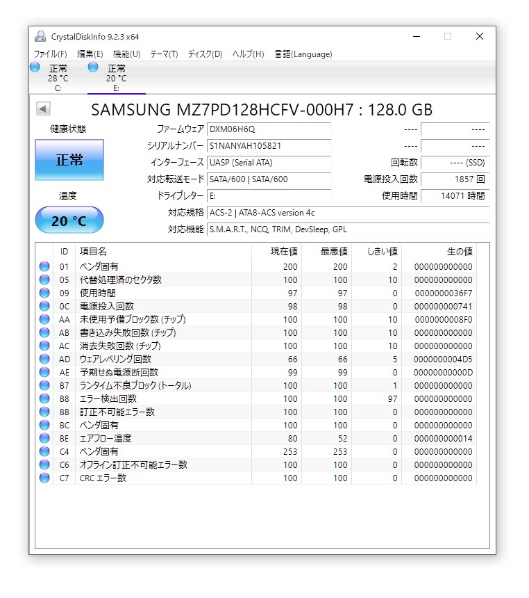 Samsung MZ7PD128HCFV 2.5inch 128GB SATA SSD 4枚セット