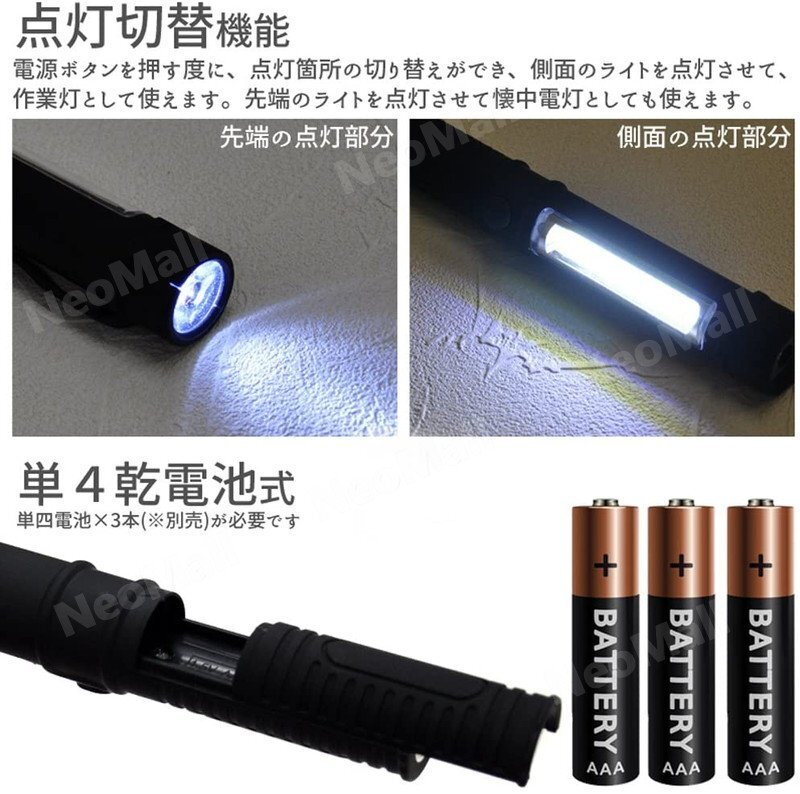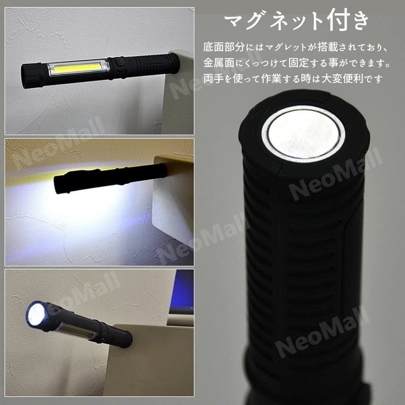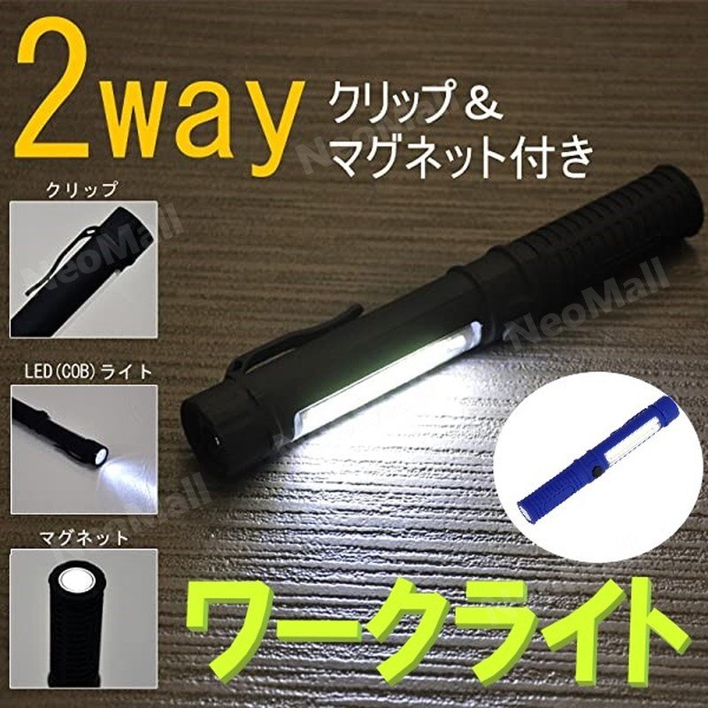 LEDワークライト ブルー 2WAY 超強力 マグネット付 クリップ付 作業灯 ハンディライト COB 懐中電灯 広範囲照射