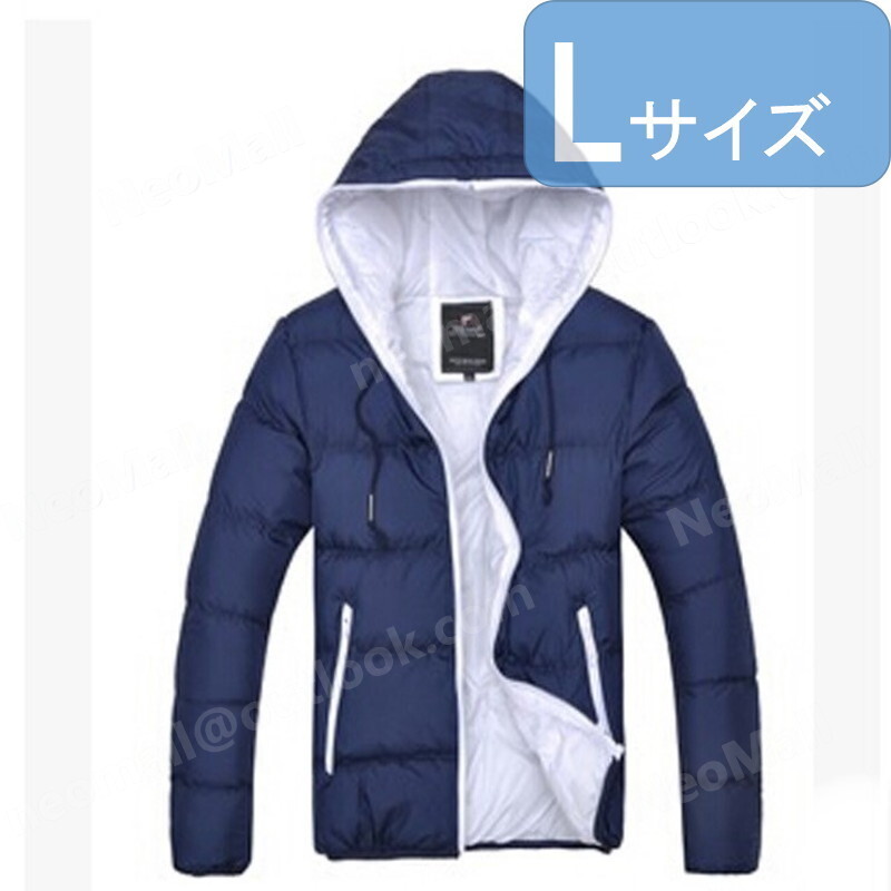 フード付き メンズ ダウン 004 ネイビー×ホワイト Lサイズ 中綿ダウン 中綿ベスト キルティング アウター 防寒 秋冬 暖かい