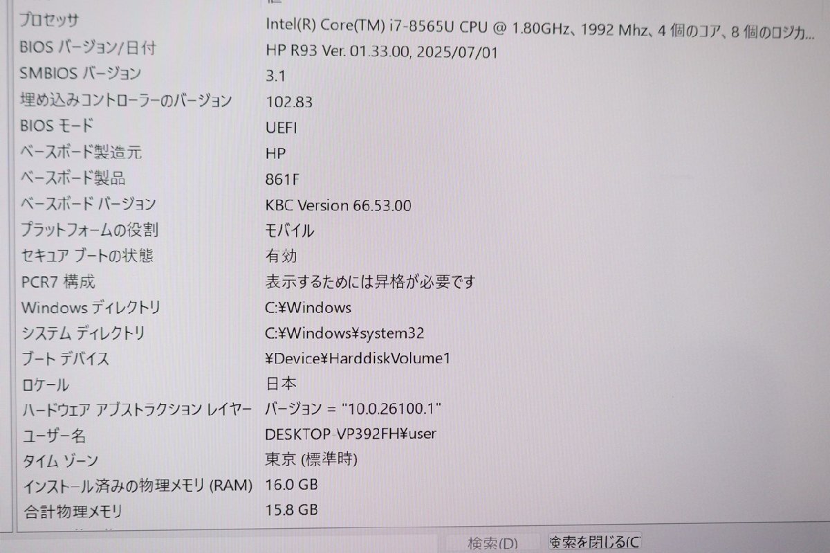 CPU:Core i7-8565U@1.80GHz 4コア8スレ