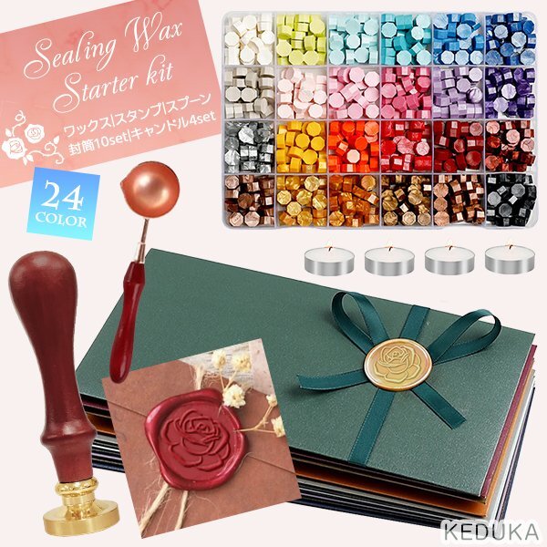 ☆シーリングワックス スターターキット 【商品名】 シーリングワックス スターターキット 【説明】 初心者の方でもお手軽に始められる♪シーリングワックスに必要なアイテム一式がスターターキットになって登場。 手紙や招待状、贈り物のラッピングはもちろんノートや瓶などの容器にもデコレーションが可能です。 ワックスは全24色。単色はもちろん色を混ぜて自分だけのオリジナルカラーも作れちゃう♪ エレガントな薔薇の刻印ができるスタンプ、ワックスを溶かす専用スプーンとキャンドル、封筒が付属する豪華セットです。 ※火の扱いには十分にご注意ください。また熱したスプーンやワックスに触れますとやけどの恐れがあります。 ※小さなお子様が使用される場合は目を離さないようお願いいたします。使用中の事故に関しましては弊社は責任を負うことができません。 【セット内容】 ・ワックス24色セット ・スタンプ ・専用スプーン ・封筒10枚 ・キャンドル4個 ※入荷時期によって色やデザインが変更になる場合がございます。 ( シーリング ワックス 封蝋 手紙 文書 招待状 封印 ラッピング 装飾 デコレーション ギフト プレゼント 贈り物 結婚式 誕生日 手作り DIY バラ 花 ) |