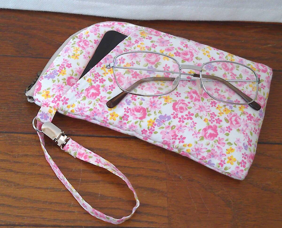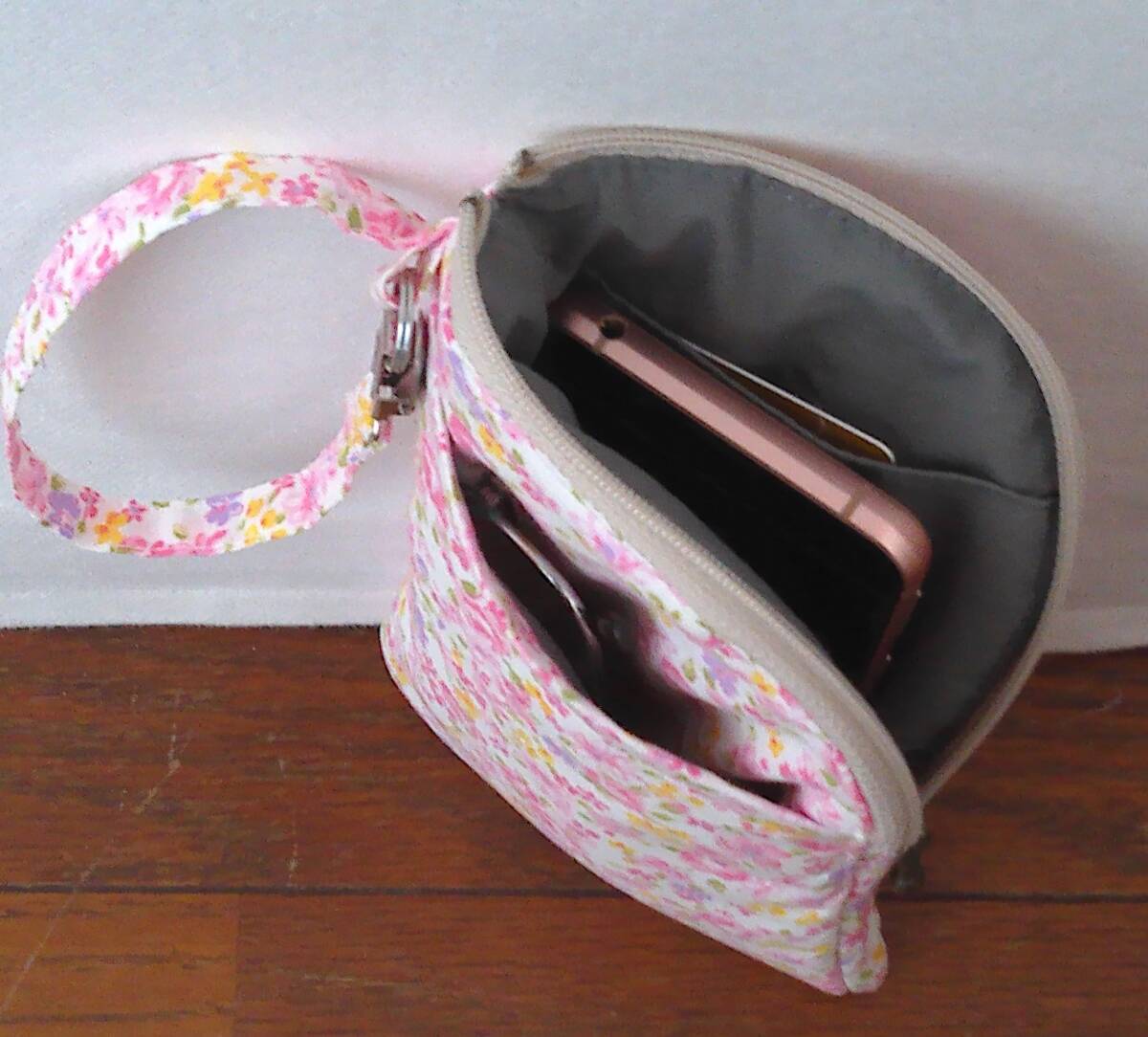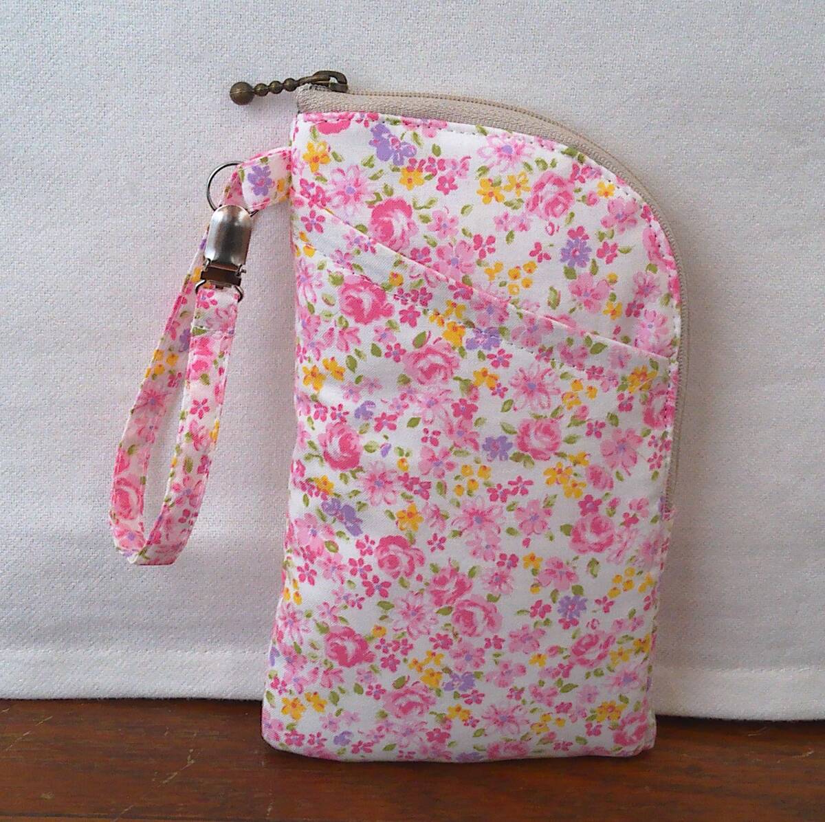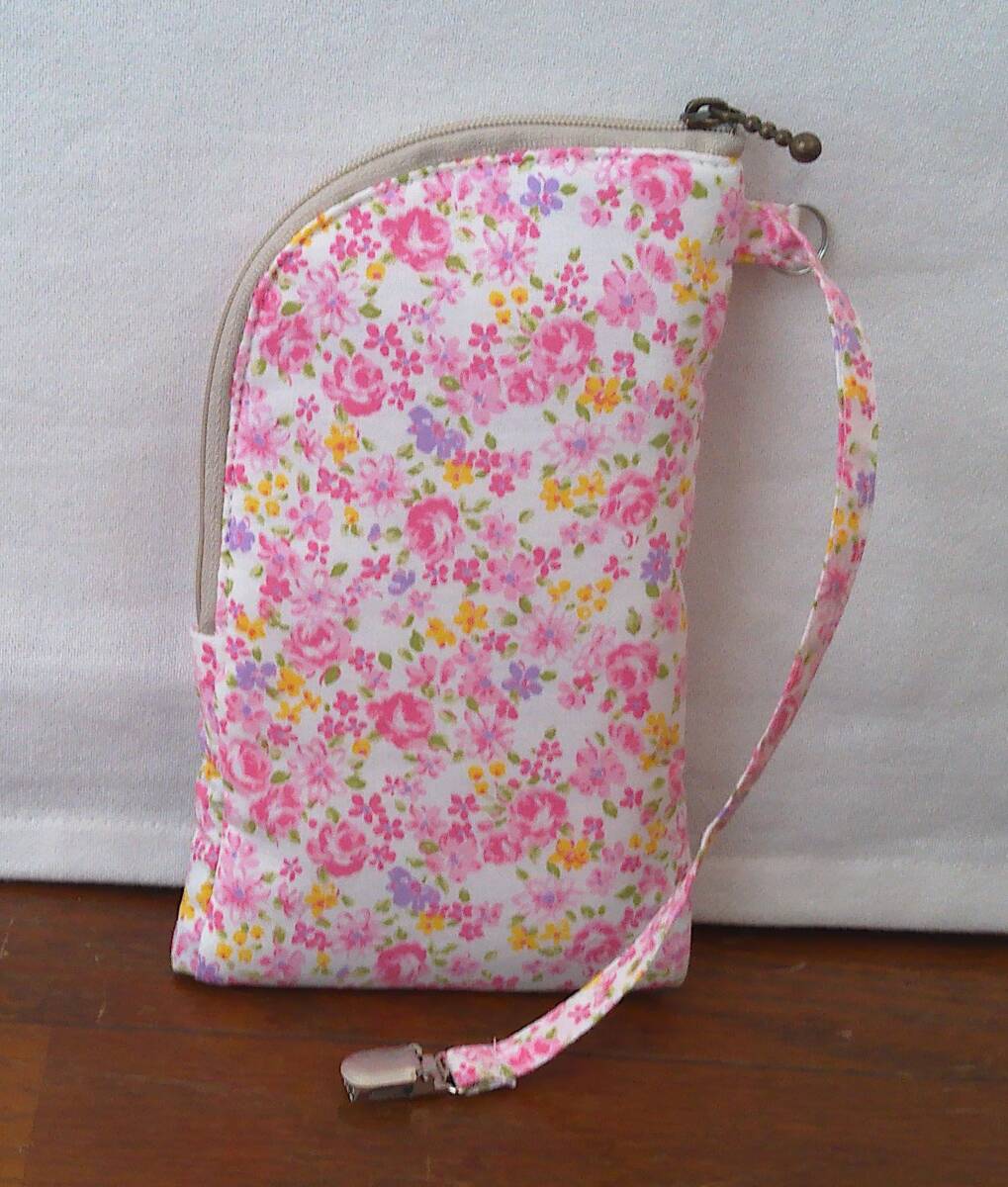 | スマホケース・ファスナー★白地ピンク系小バラ多花 |