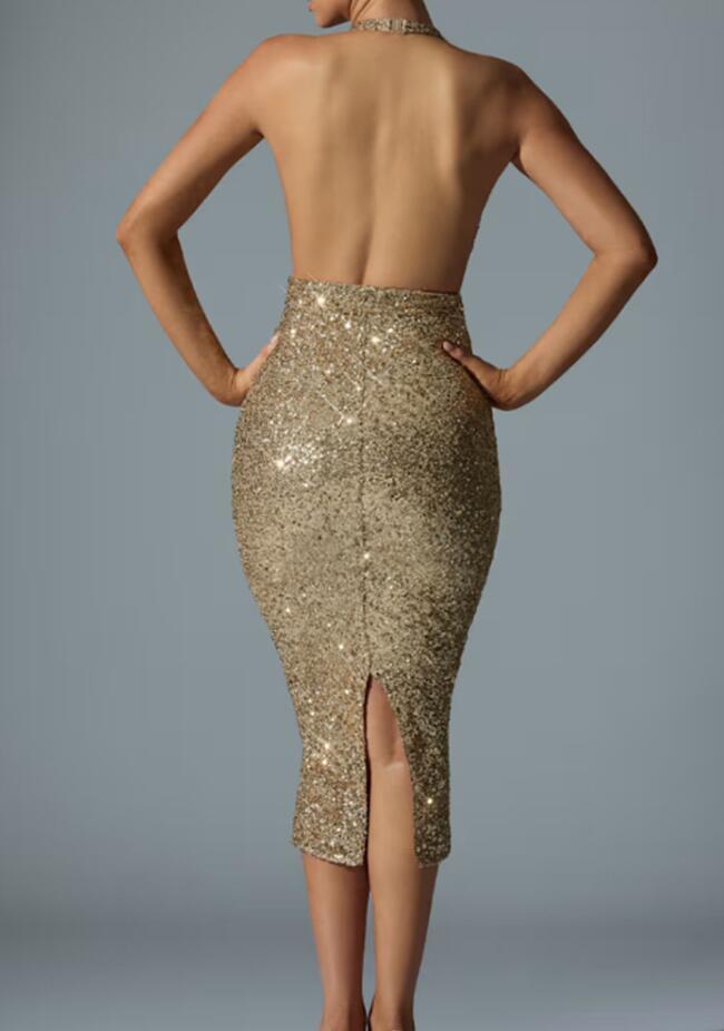405 ワンピースladiesレディース ◇ 綺麗めシルエット ◇ 素敵  タイト   ホルターネック   ベージュ