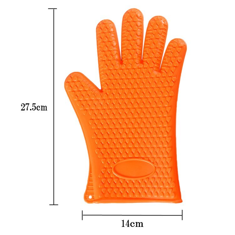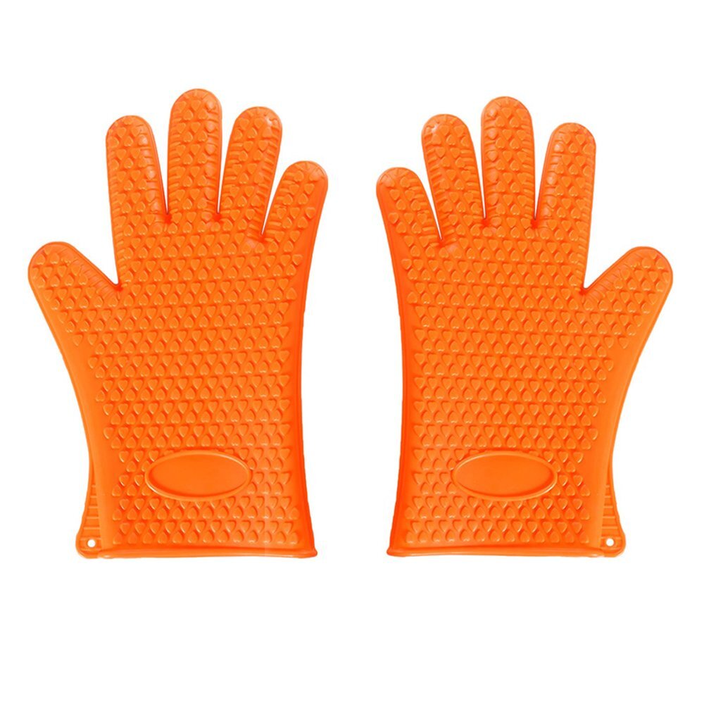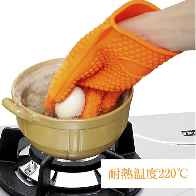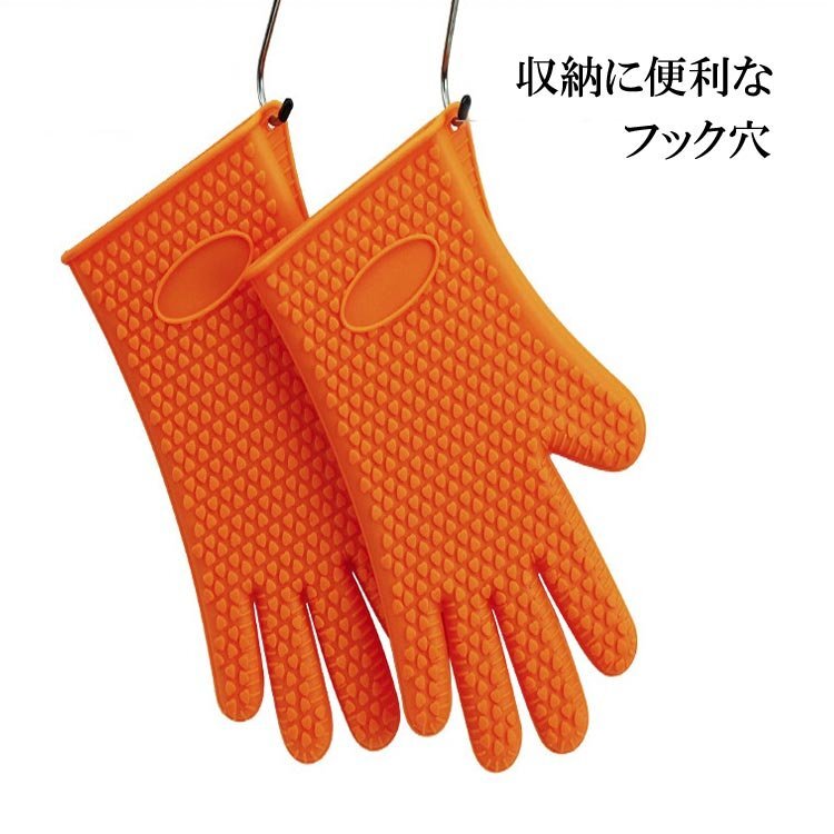 ◆耐熱シリコン手袋 2枚セット シリコン 5本指 滑り止め 防水 耐熱 耐冷 フリーサイズ 両手 左右兼用 キッチン アウトドア キャンプ バーベキュー 焚き火 ピザ窯【オレンジ】SCGV145