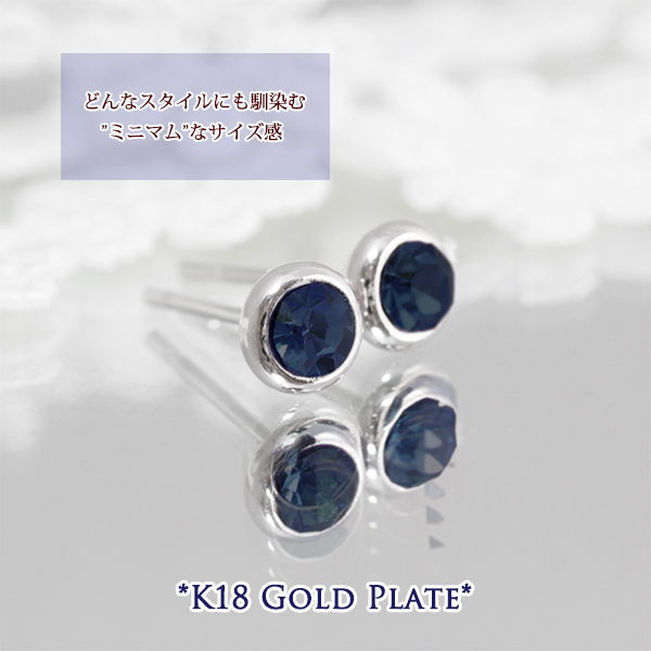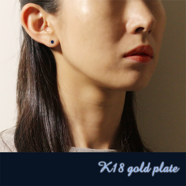 新品/ピアス/K18GP/サファイア/小さい/小さめ/シルバー/18金/ホワイトゴールド/レディース/両耳/シンプル/CZ/ダイヤ/カラー/青/WG