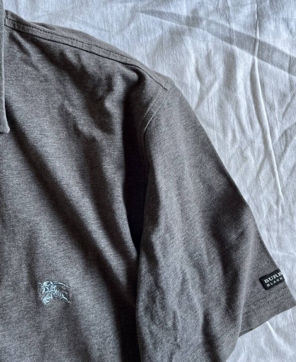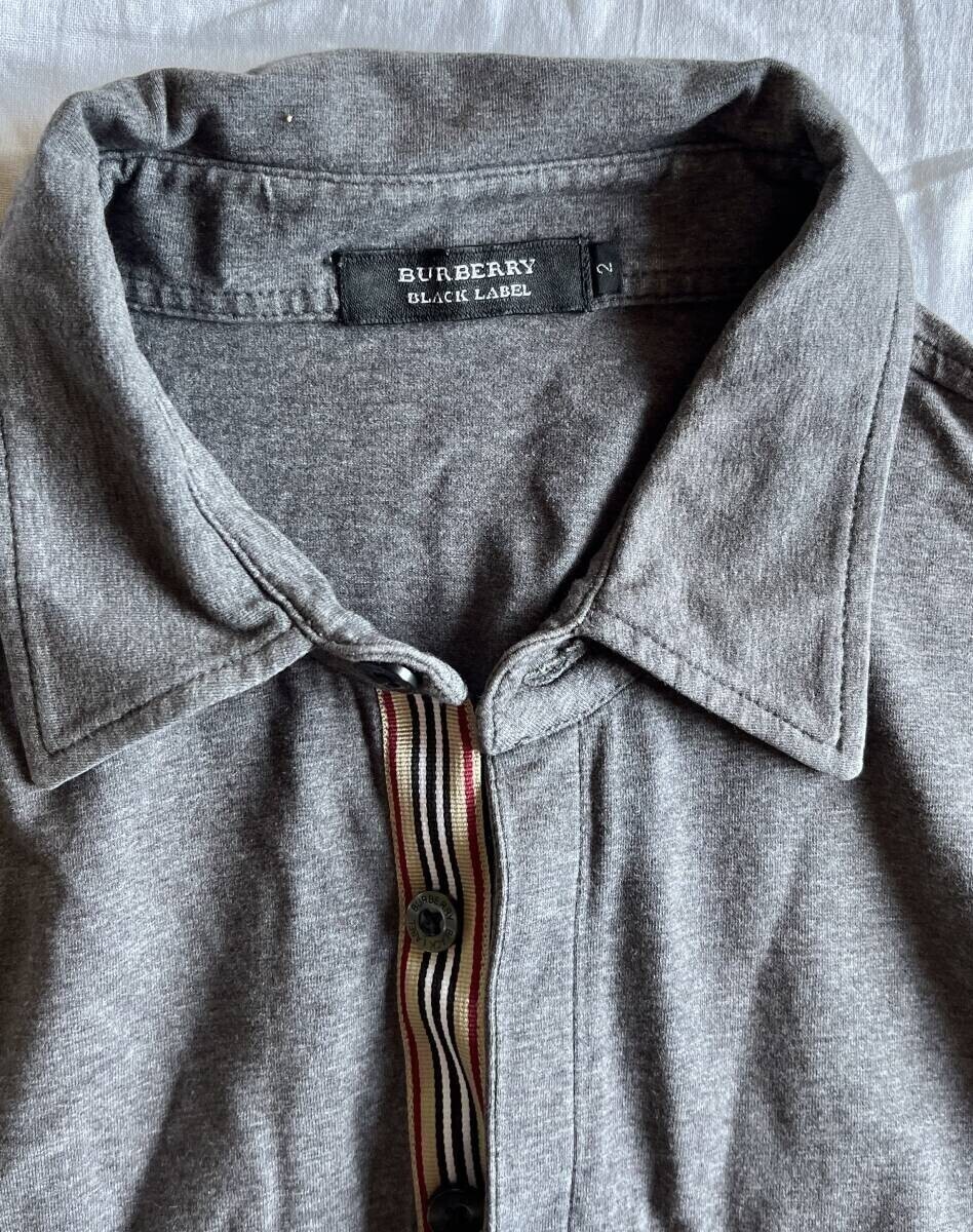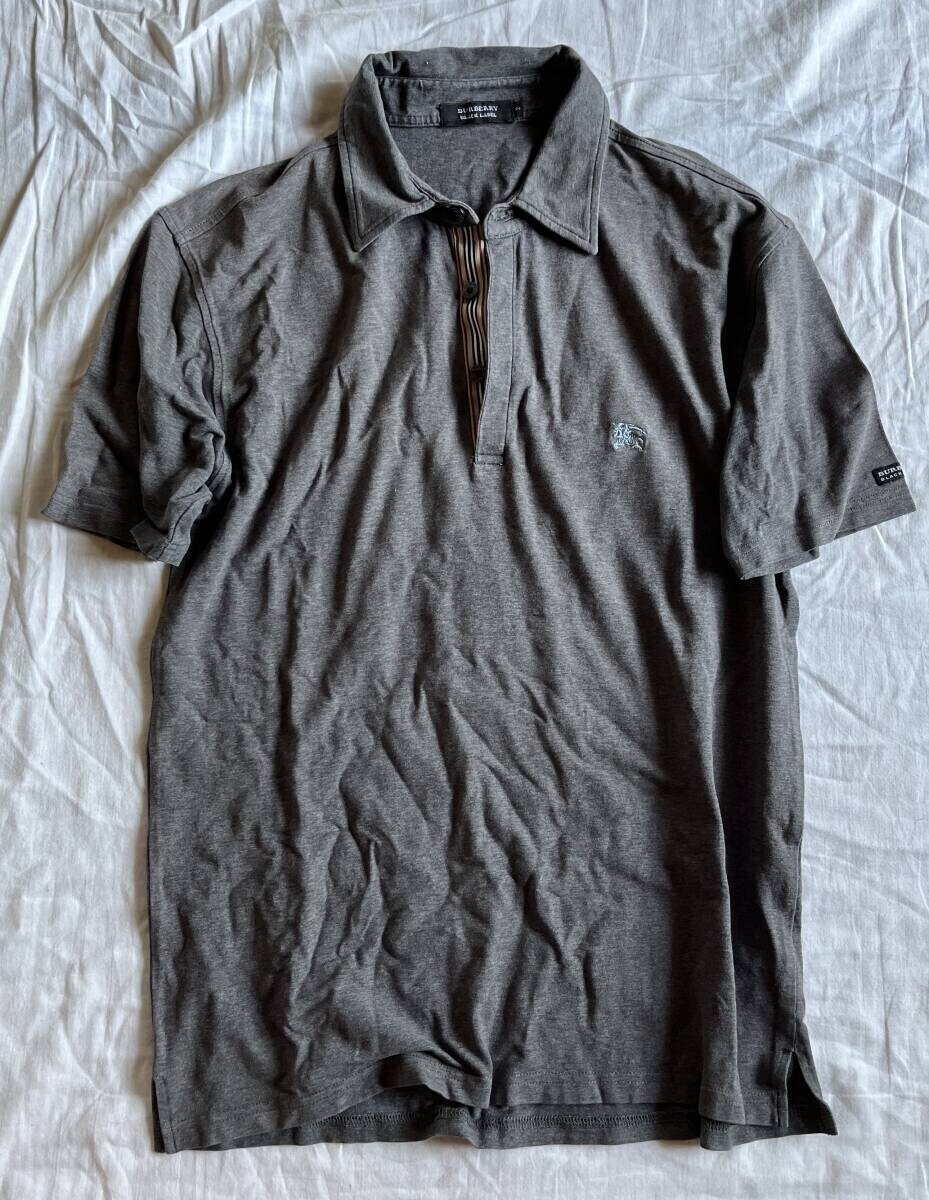 バーバリーブラックレーベル ポロシャツ ノバストライプ ロゴ 鹿の子 コットン 綿 半袖 Tシャツ M(2) グレイ 定番