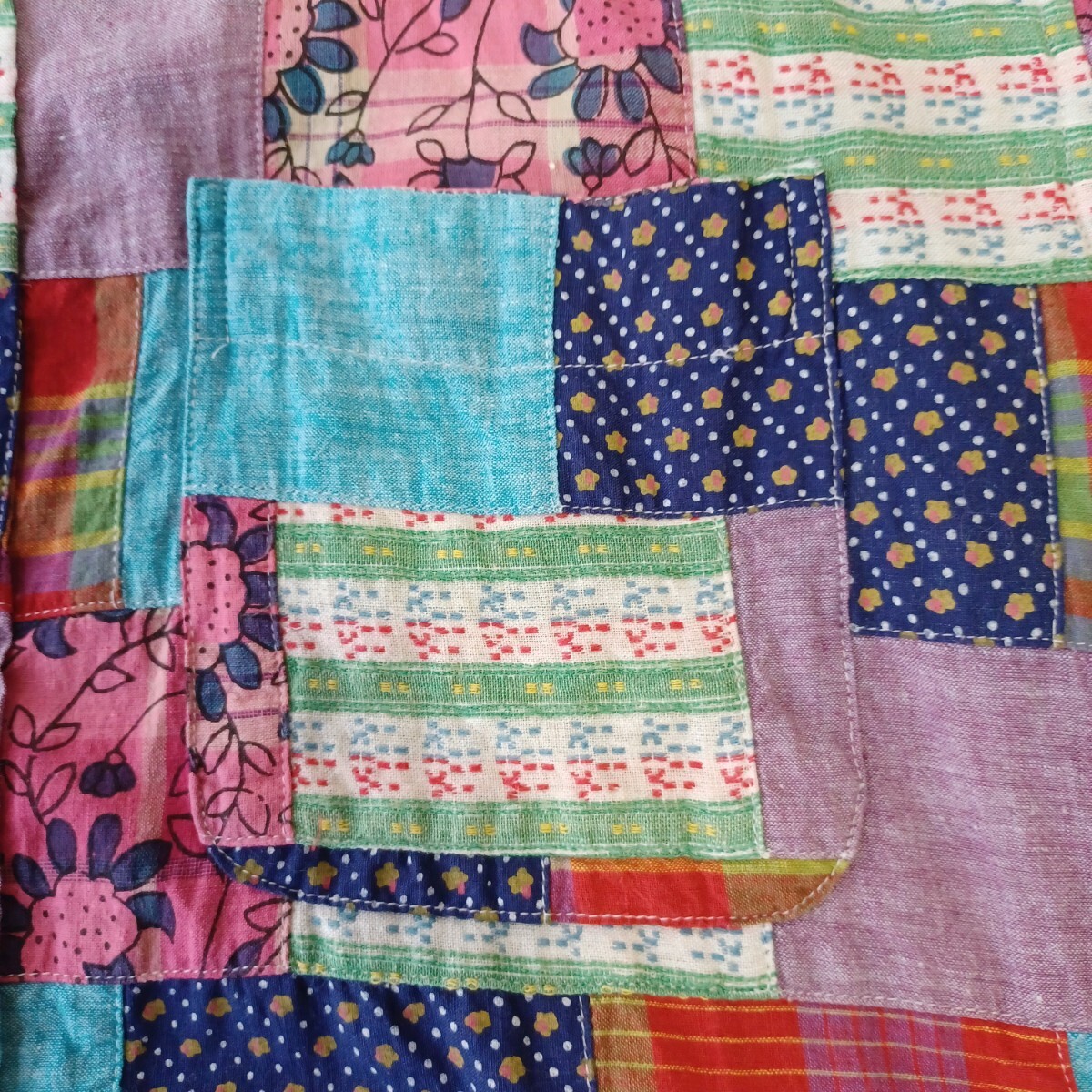 色々な柄、無地の組み合わせで、珍しいパッチワークデザインになります。
