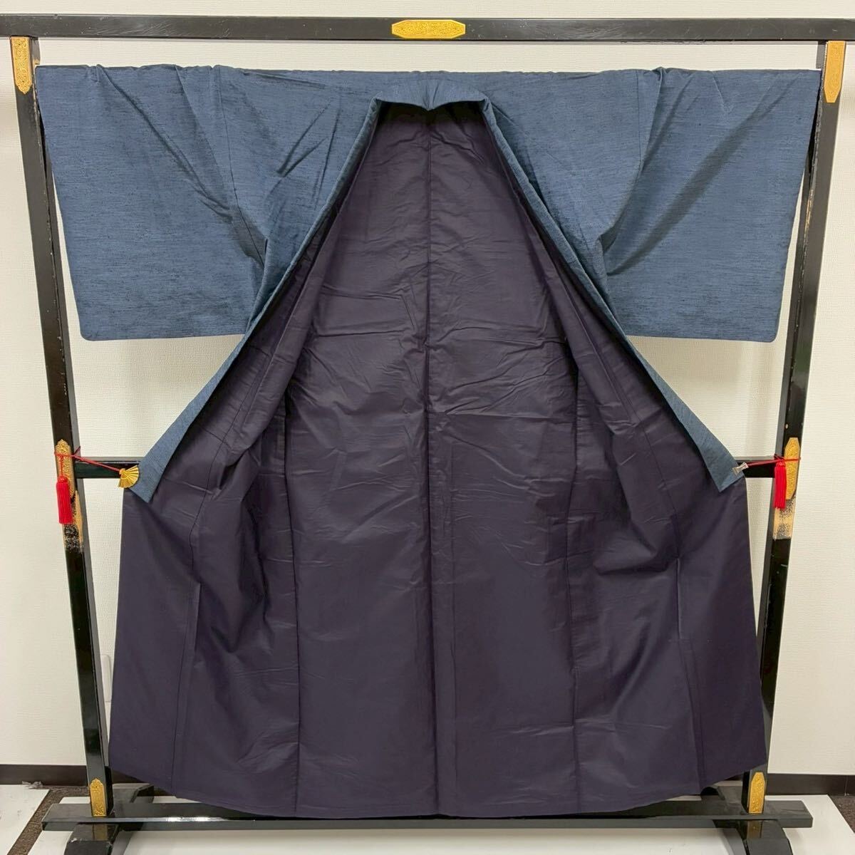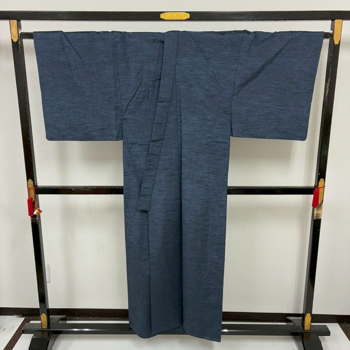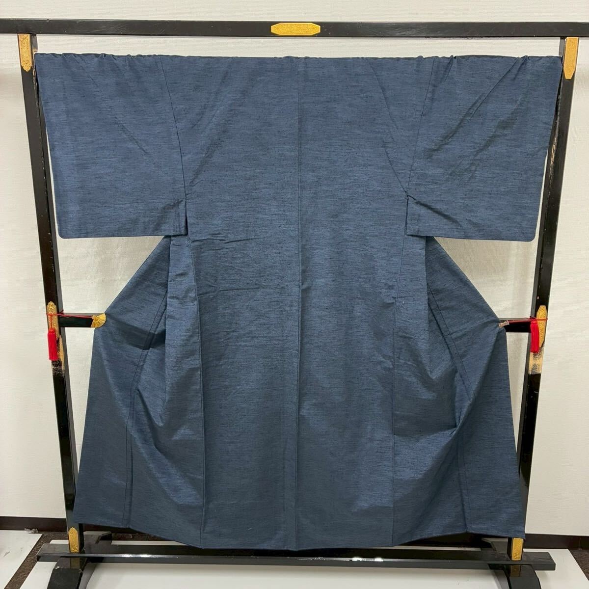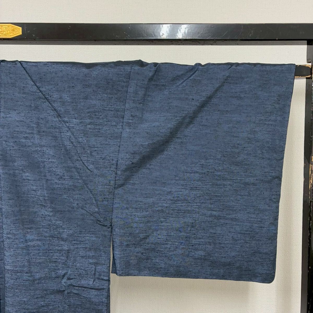 【楓】本真綿手織り紬 紳士着物 裄71 正絹 藍染め 袷 KK-2554