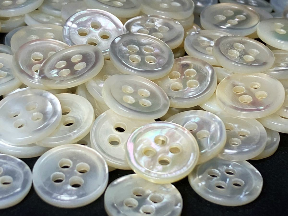 貝ボタン界で一番高級と言われる白蝶貝ボタンです。