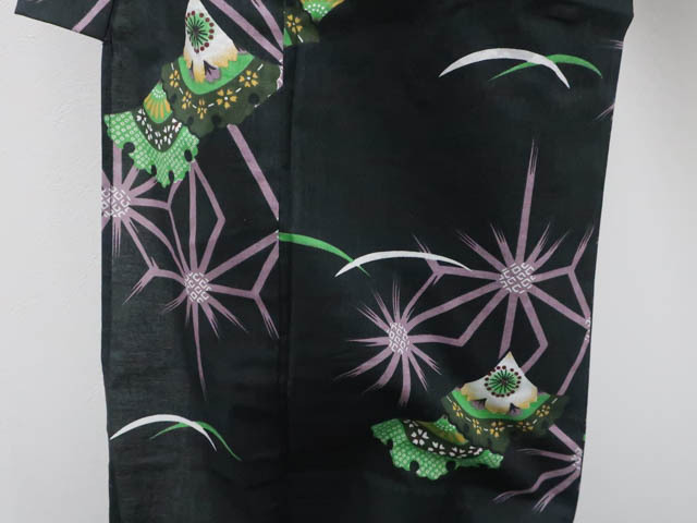 リサイクル商品ではございますが、大変良い状態のお品です。 地色は濃灰です。 1枚目の画像が近いお色かと思われます。 素材は綿です。 |