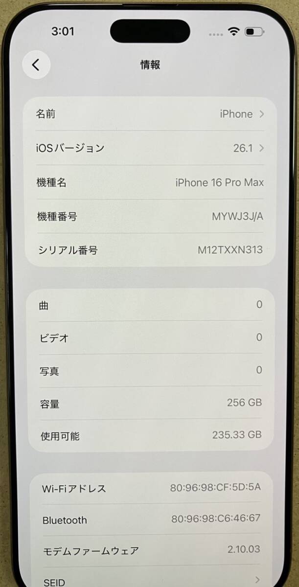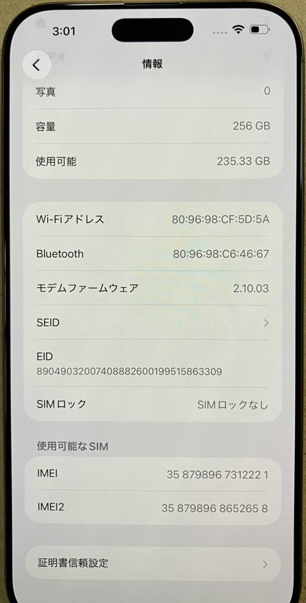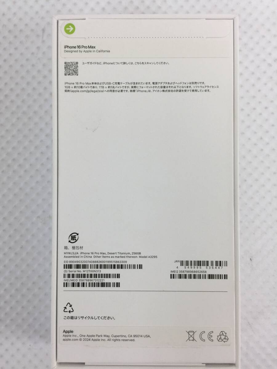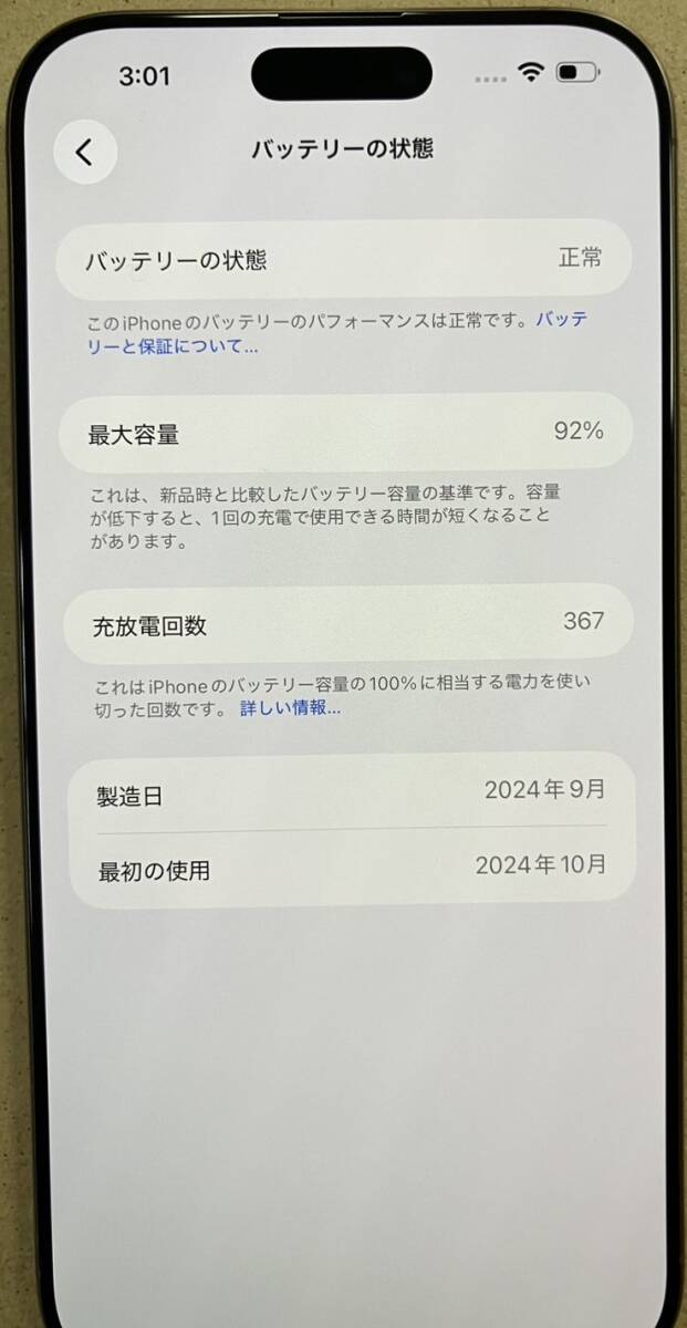 ibc142* 美品 Apple iPhone16 Pro Max 256GB MYWJ3J/A SIMフリー デザートチタニウム バッテリー状態92%