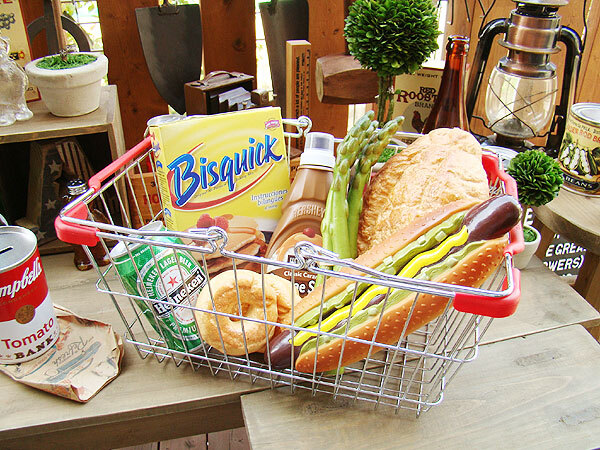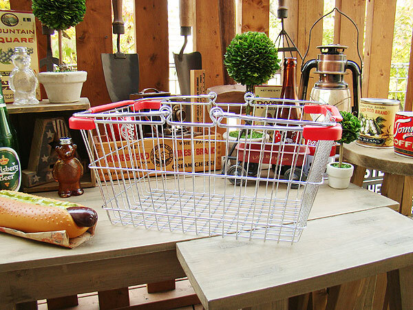 スーパーマーケットでおなじみのカゴ、ショッピングバスケットのメタルタイプがこちら!この形、この大きさ、どれを取っても完成された使いやすさをあらためて感じさせてくれました。洗濯物を運んだり、野菜ストッカーにしたり、オモチャをザクザク入れたり、マガジンラックにしたり、はたまた週末のバーベキューの時には下準備したフードを運び、車のトランクでは散らかりがちな洗車道具を整理したり、、、あげればキリがないほどとにかく便利!カゴの周りにさりげに付いてるカラーが単なる道具として終わらせないオシャレなポイント!シンプルな中に個性をしっかりと感じさせてくれます。上に上に積み上げてスタッキングもできちゃうからいくつかカラーを合わせて使うってのも楽しい方法!オシャレにキープしておくはずが、気がつけばビニールだの紙袋だのプラボックスだの、、、あ~あ、こんなはずじゃ。。。そんな人はこれで一気にまとめてオシャレに整理しちゃえ!ヽ(^0^)サイズ:横34.5cm×縦24.5cm×高さ16.5cm(約)
