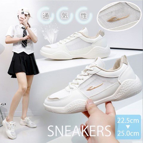 ・メッシュ素材のアッパーなので通気性抜群で蒸れにくく、暑い時期やスポーツシーンにぴったりです。