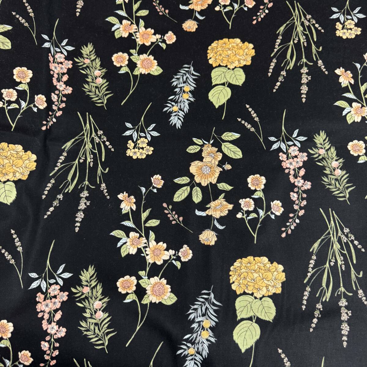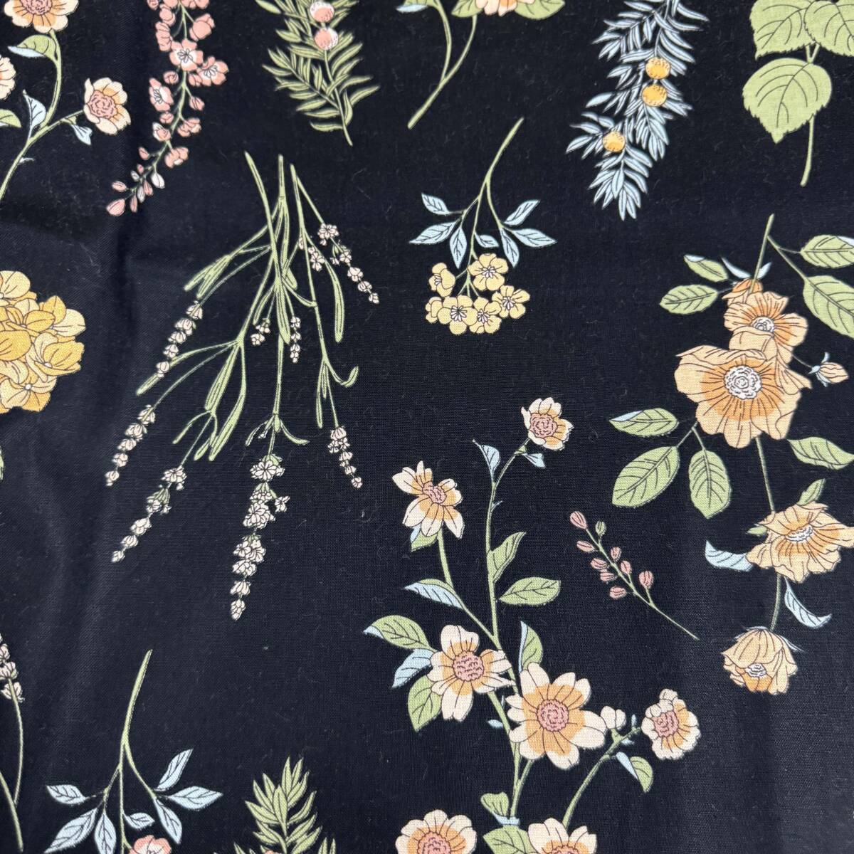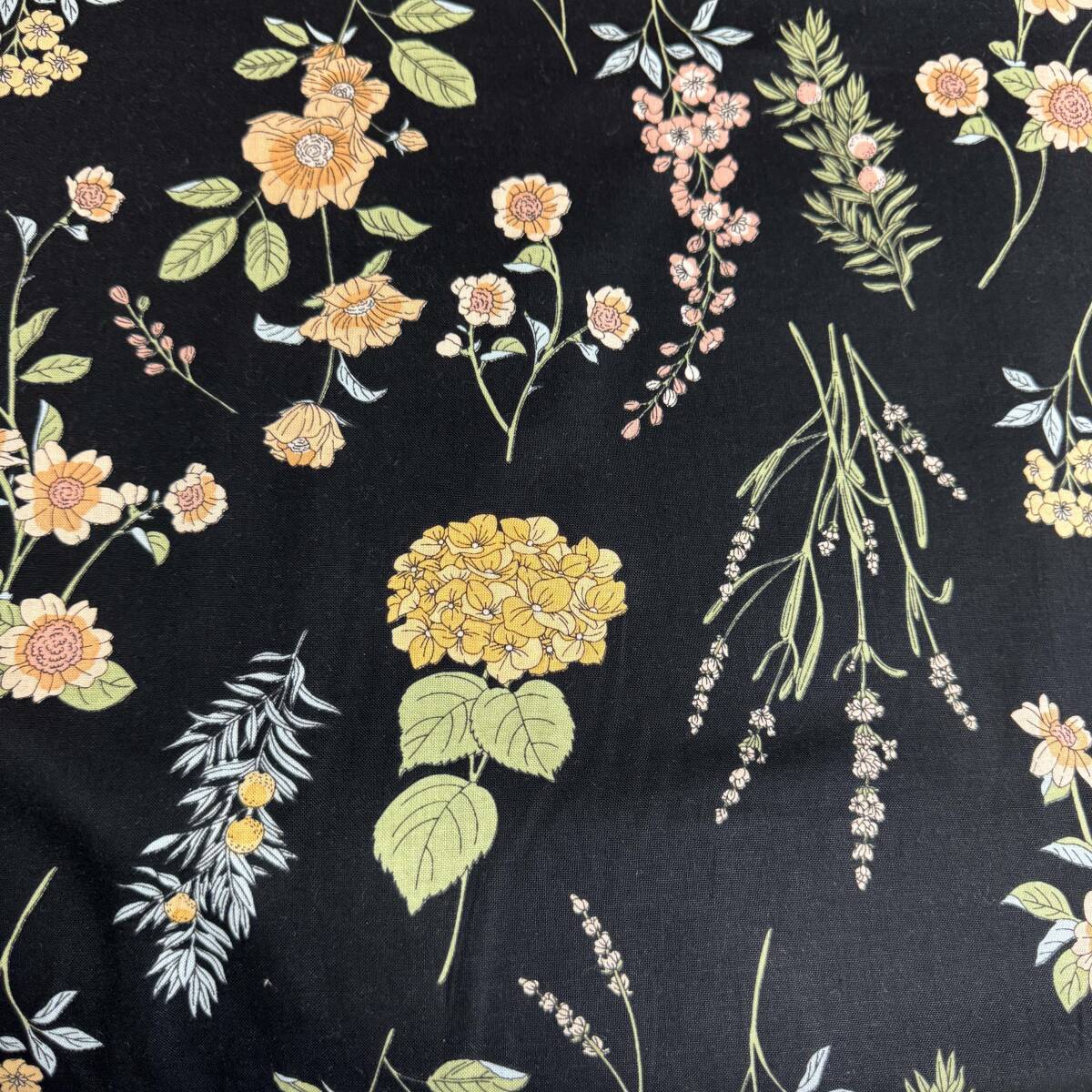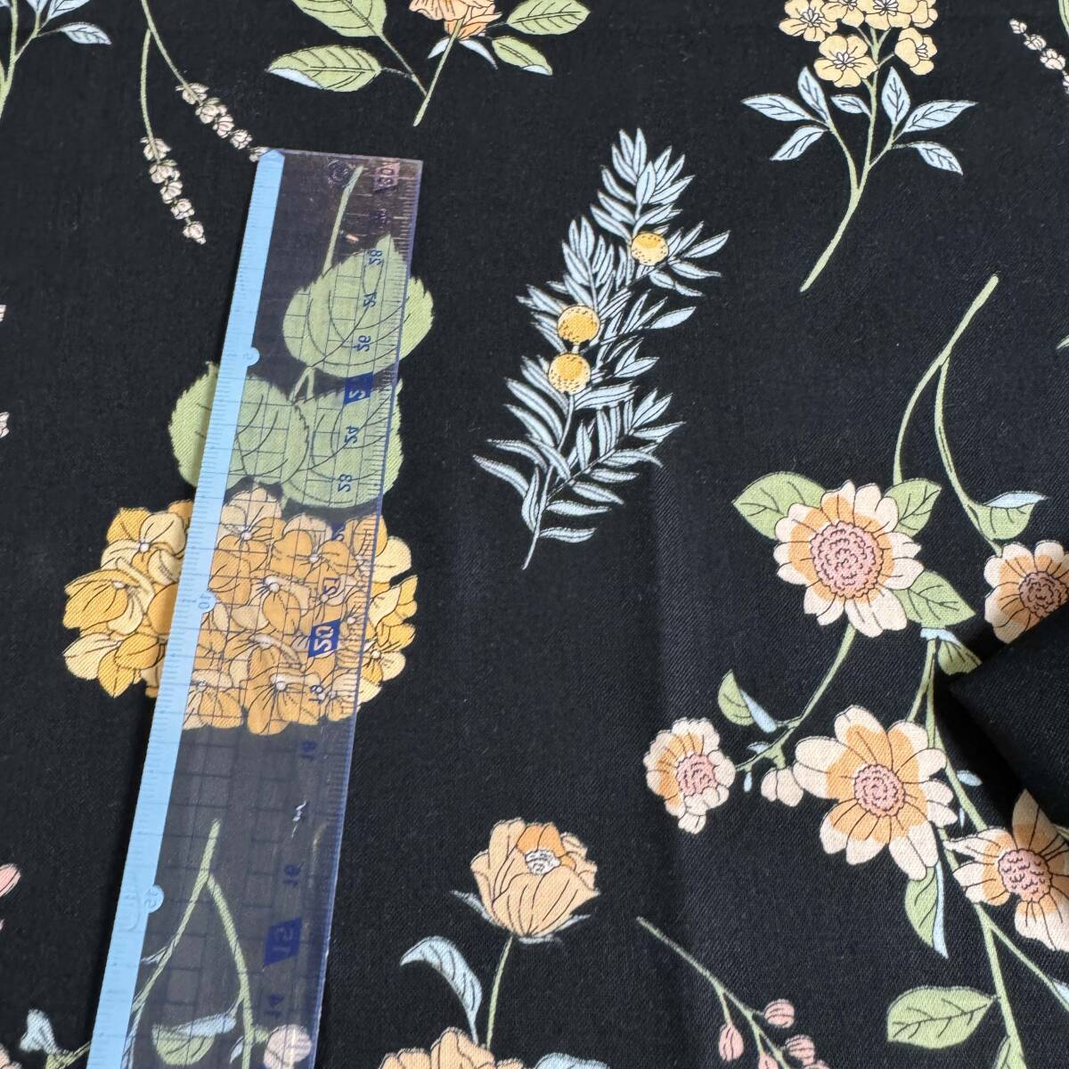 ボタニカル花柄★希少USAコットン生地 2m 布ノスタルジック黒地アンティーク風