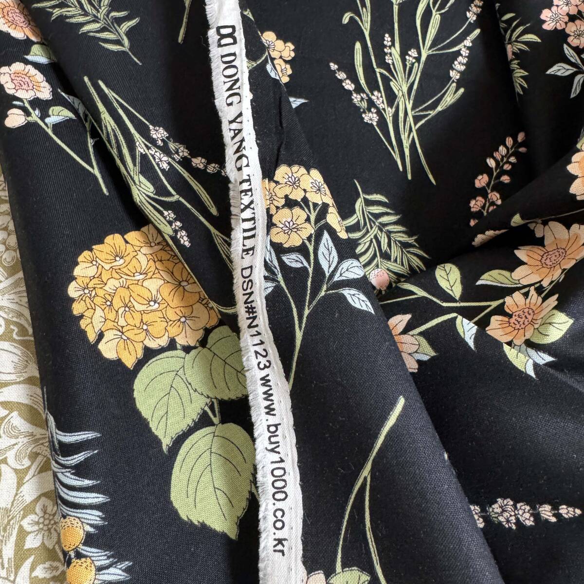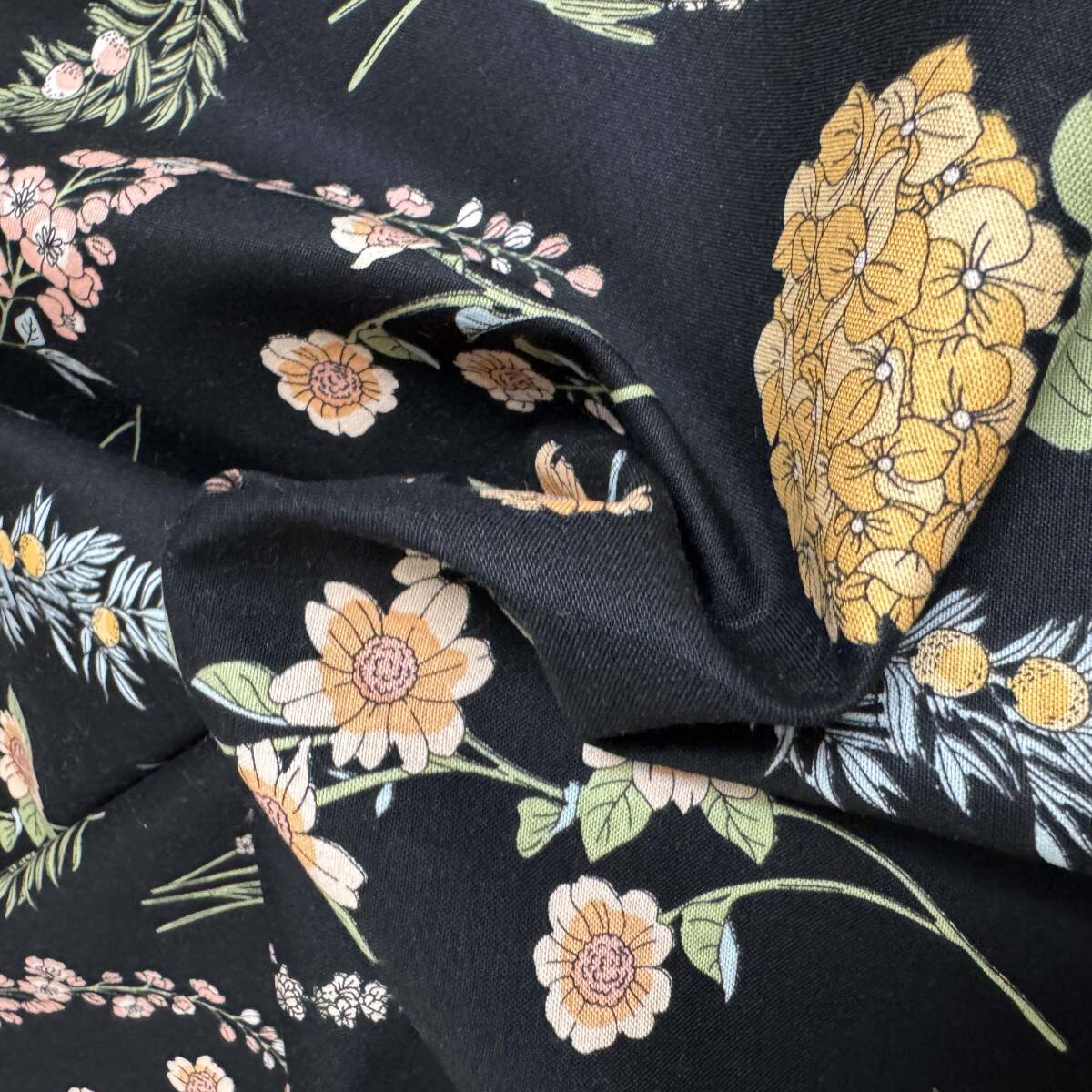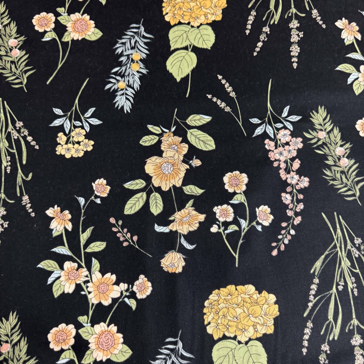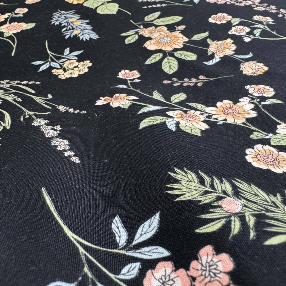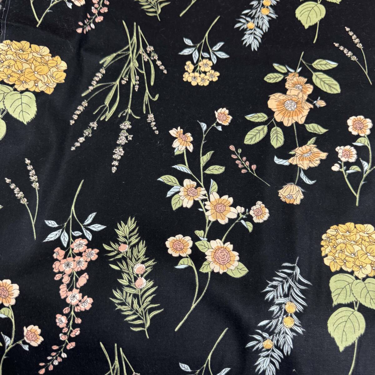 ボタニカル花柄★希少USAコットン生地 2m 布ノスタルジック黒地アンティーク風