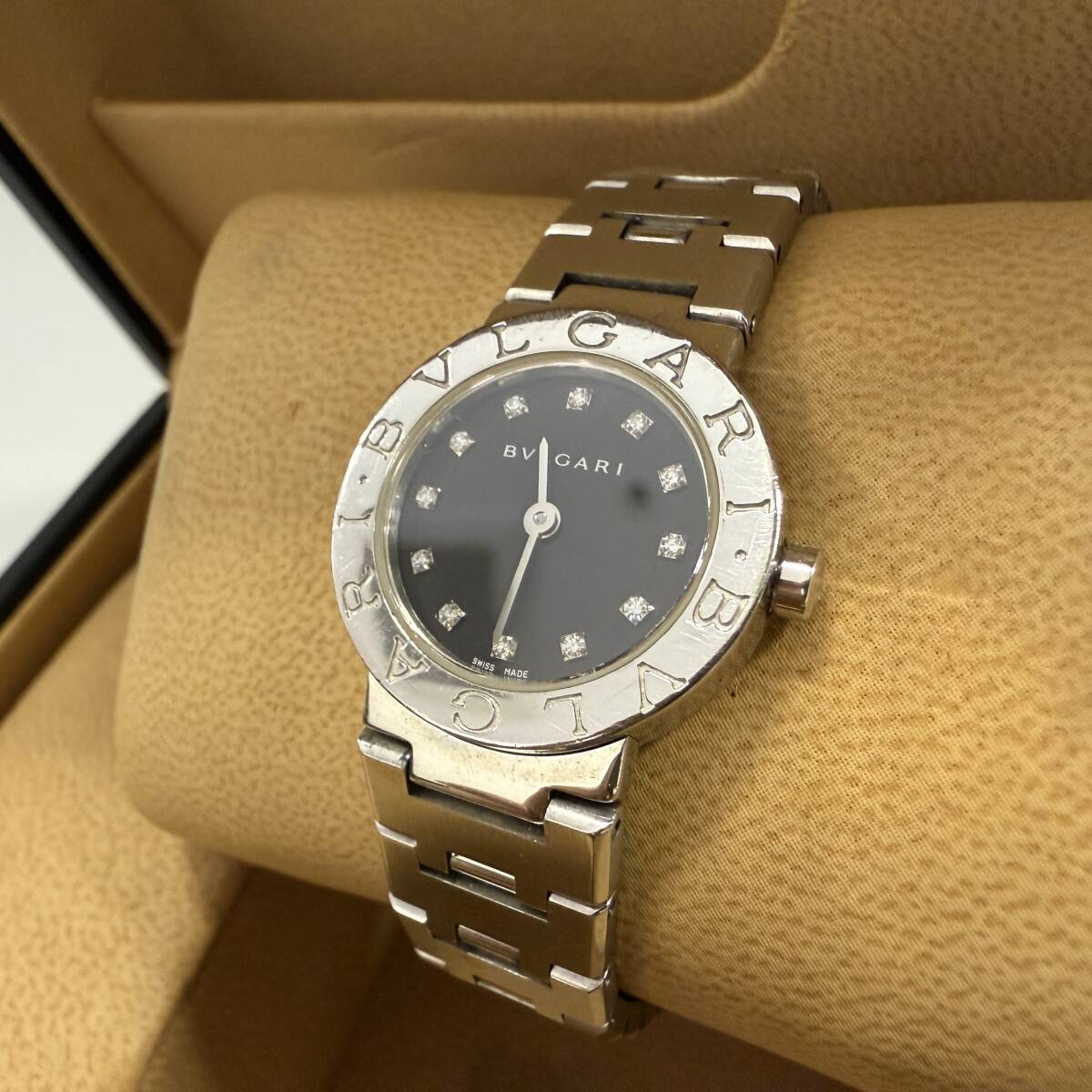 BVLGARI ブルガリブルガリ BB23SS 12Pダイヤ 黒文字盤