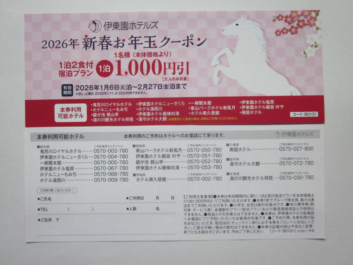 伊東園ホテルズの新春お年玉クーポン 1000円引き