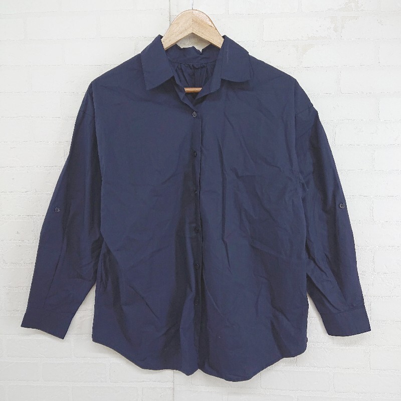 ◇ garde Robe ギャルドローブ nano universe オープンカラー 長袖 シャツ ブラウス サイズ36 ネイビー レディース P