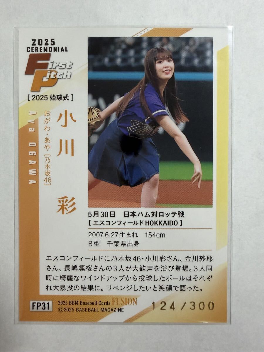 【小川 彩】 BBM 2025 ベースボールカード FUSION 始球式 乃木坂46 ホロPP版 ハート柄 300枚限定 124/300