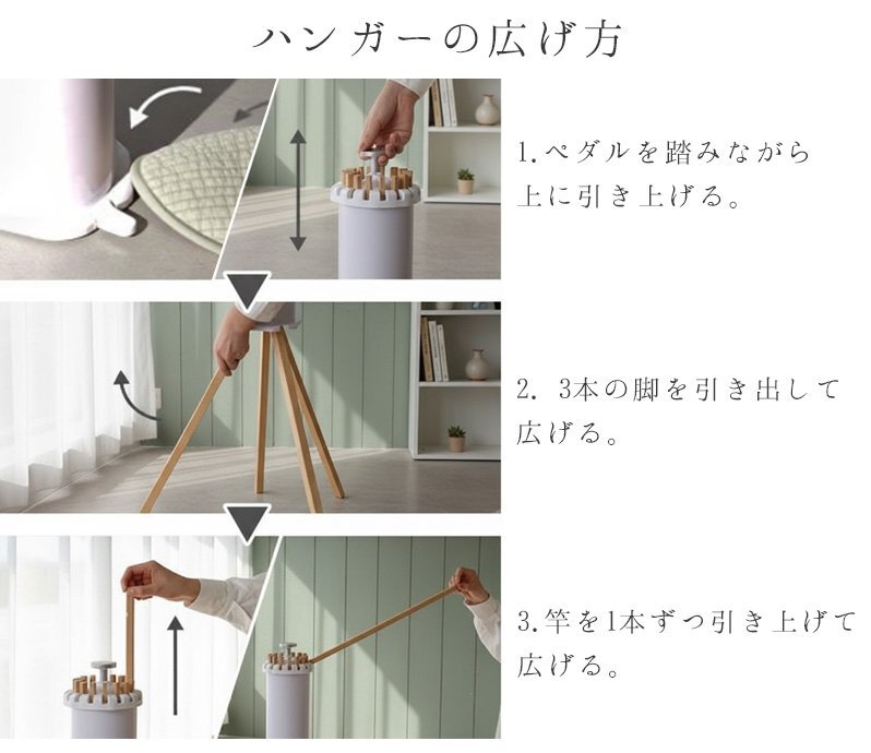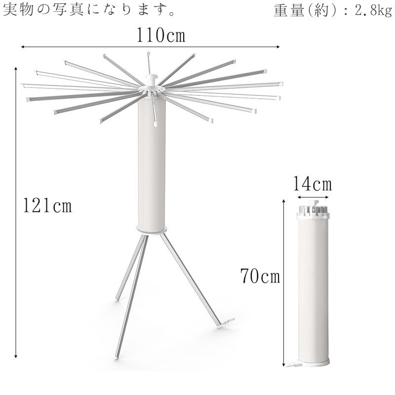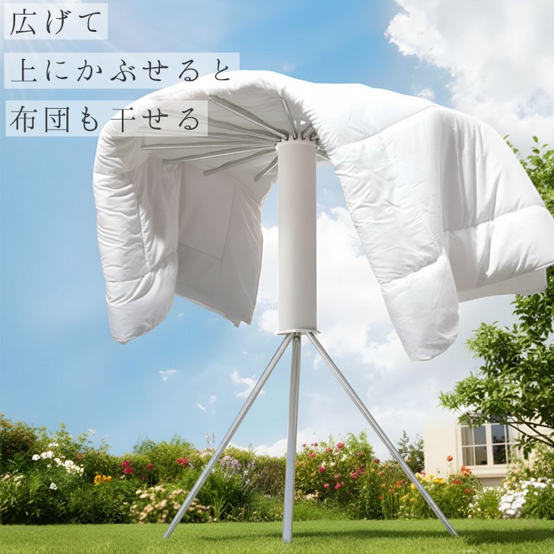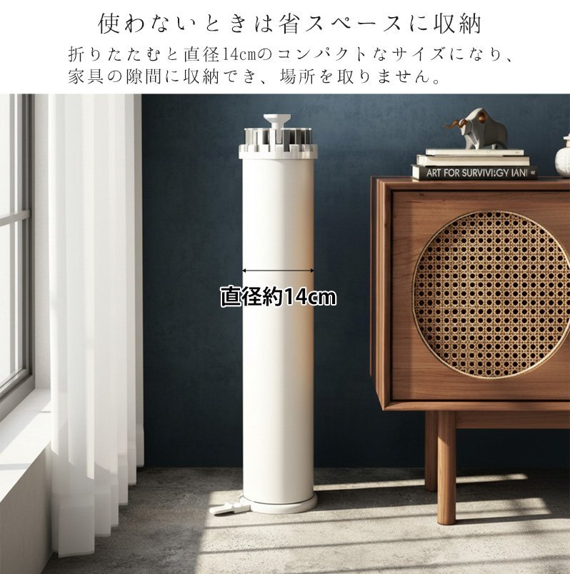 ![]() ■使う場所や洗濯物の量に合わせて形を変えられる 最大16本の物干し竿で大容量の洗濯物にも対応! 狭いスペースでも広いスペースでも、柔軟にサイズを調整でき、必要な分だけ竿を出して使えるので、無駄なく効率よくお洗濯ができます。 さらに、竿の数を減らしてコンパクトに使うことも可能で、家族の人数や場所に応じて使い方を変えることができます。 ■使わないときは省スペースに収納 使わないときは省スペースに収納。折りたたむと直径14cmのコンパクトなサイズになり、家具の隙間に収納でき、場所を取りません。狭い部屋でもスッキリ片付けられ、収納時に邪魔にならず、必要な時にサッと取り出してすぐに使えます。収納時も場所を取らないので、賢くスペースを活用できます。 ■広げて上にかぶせると布団も干せる 広げて上にかぶせると布団も干せるので、忙しい日常でも簡単に大きなアイテムを干すことができます。布団やシーツをしっかりと乾かせる広いスペースを確保でき、風通しが良いため、効率よく乾燥させることができます。 ■商品詳細 カラー:ホワイト×シルバー サイズ(約):展開時:高さ121cm、横幅110cm / 収納時:高さ70cm、横幅14cm 重量(約):2.8kg 素材:本体:プラスチック / 先端パーツ、ハンガー:アルミ 耐荷重(約):20kg |
