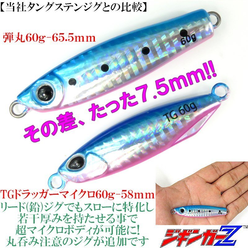 タングステン(TG)並みの超マイクロサイズ メタルジグ 80g 74mm ジギンガーZ 弾丸 Dangun スモールベイト攻略【グリキン】