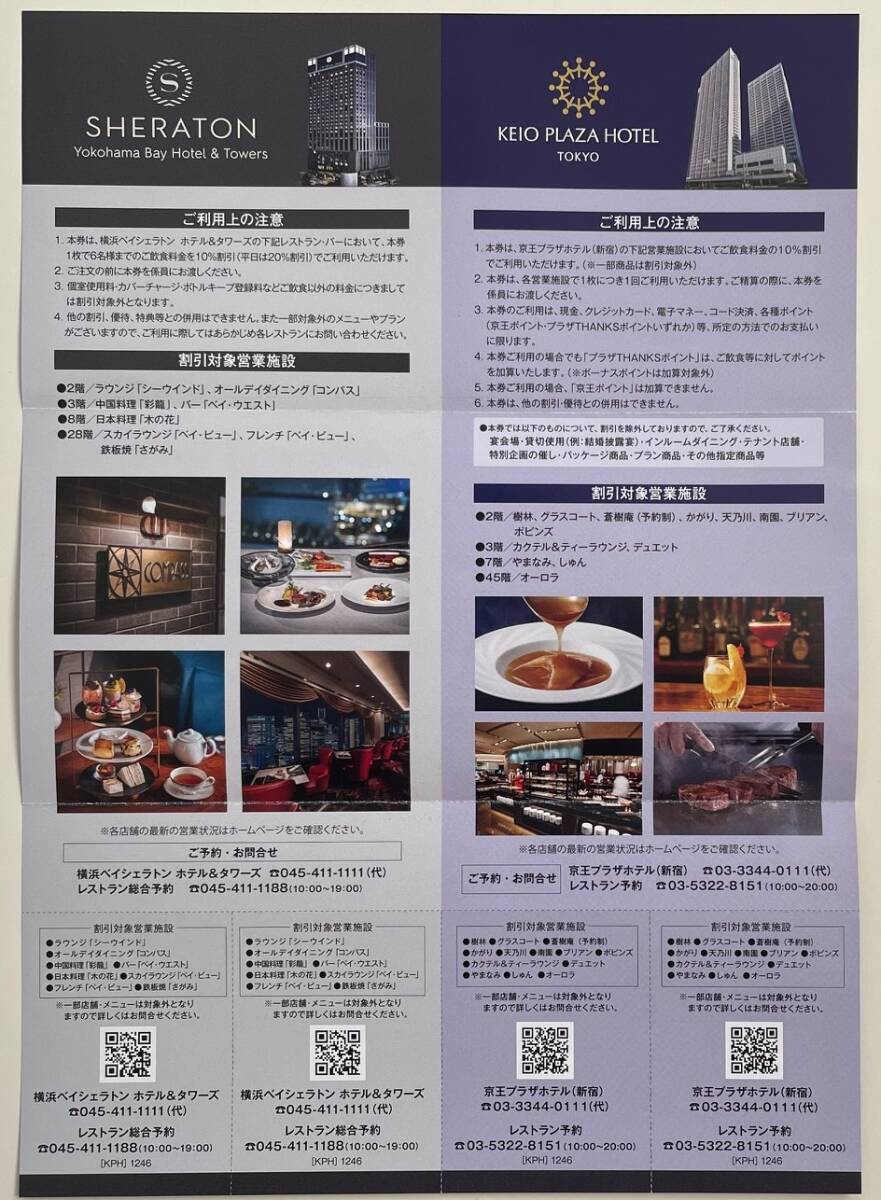 ・横浜ベイシェラトンホテル&タワーズ レストラン・バー 10%割引 2枚