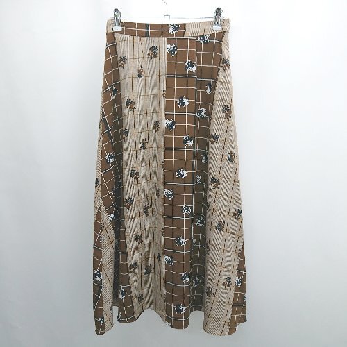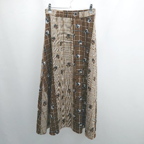 ◇ ⊂ Doux archives ドゥアルシーヴ チェック柄 花柄 ロング Aライン スカート サイズM ブラウン系 レディース E
