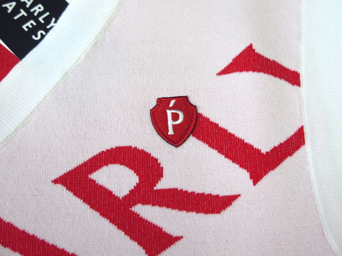 表情豊かに配置されたメゾンロゴの魅力を強調したVネックベスト。