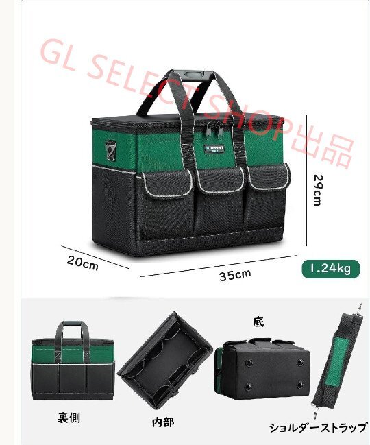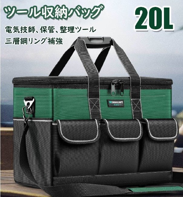 ツール収納バッグ 工具バッグ 工具袋 ツールボックス 工具入れ 防水 耐荷重100kg 20L 大容量 手提げ 肩掛けベルト付き 2way 電工 作業用