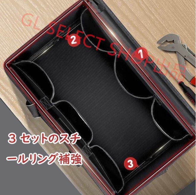 ★三層のスチールリングで補強されており、ツールバッグはより立体的です。