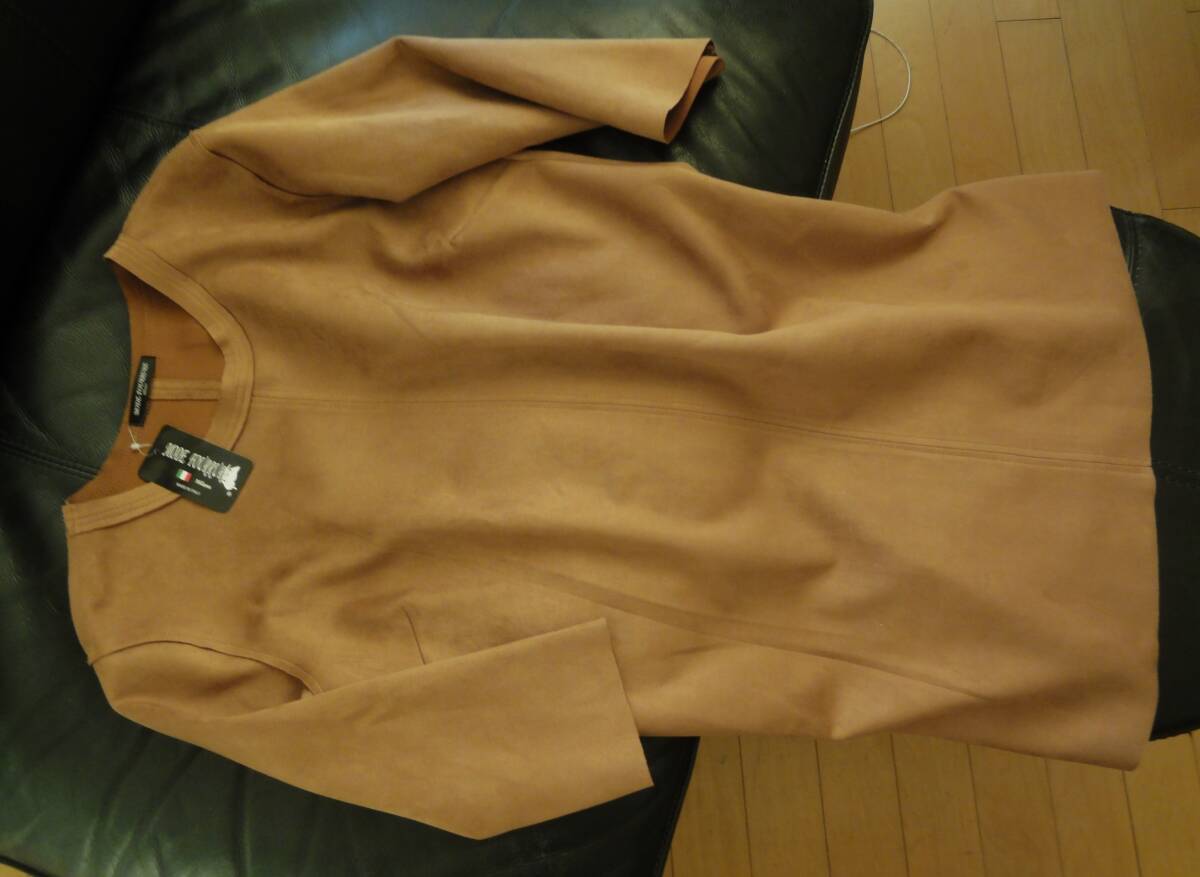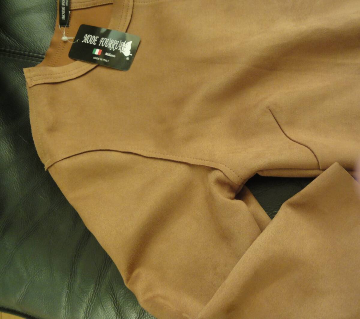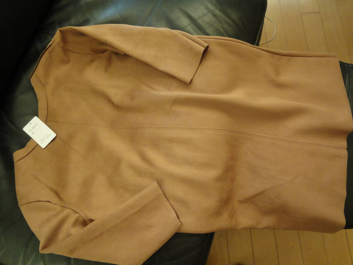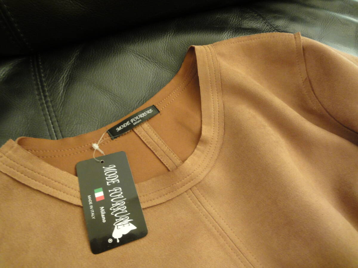 ◆新品タグ付SALE☆イタリア製*キャメル系*上質フェイクスエード素材*定番クルーネック*七分袖チュニック/L~LL◆