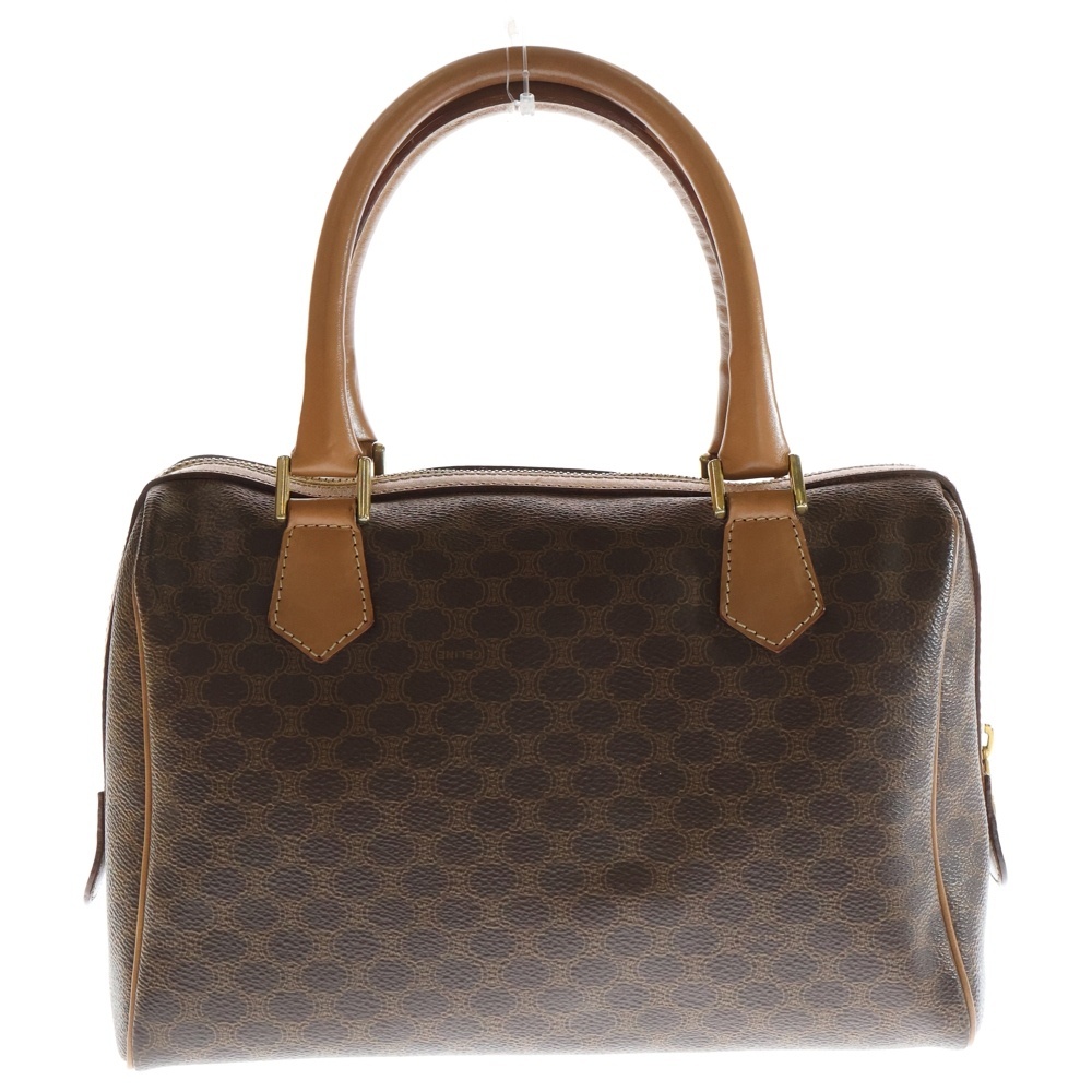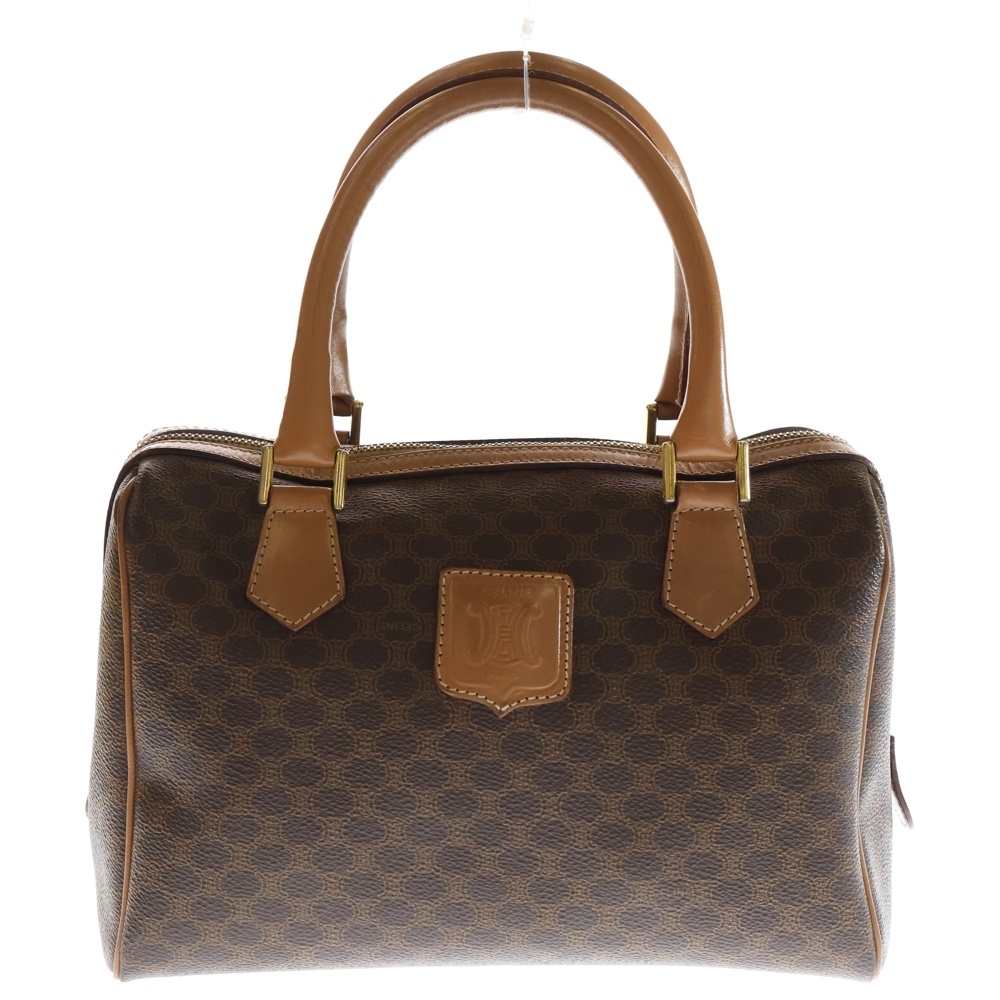 CELINE セリーヌ マカダム ボストンバッグ ハンドバッグ ブラウン レザー×PVC ゴールド金具