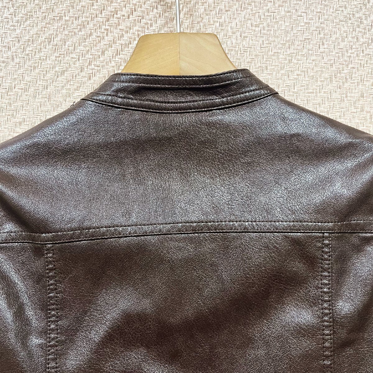 表地には上質な羊革を100%使用しており、しなやかで柔らかな質感が特徴です。程よい艶のしっとりした質感が品格を漂わせ、着るたびに体に馴染んでいく経年変化も楽しめます。裏地はコットン混紡素材を使用し、通気性が良く、快適な着心地を実現しています。