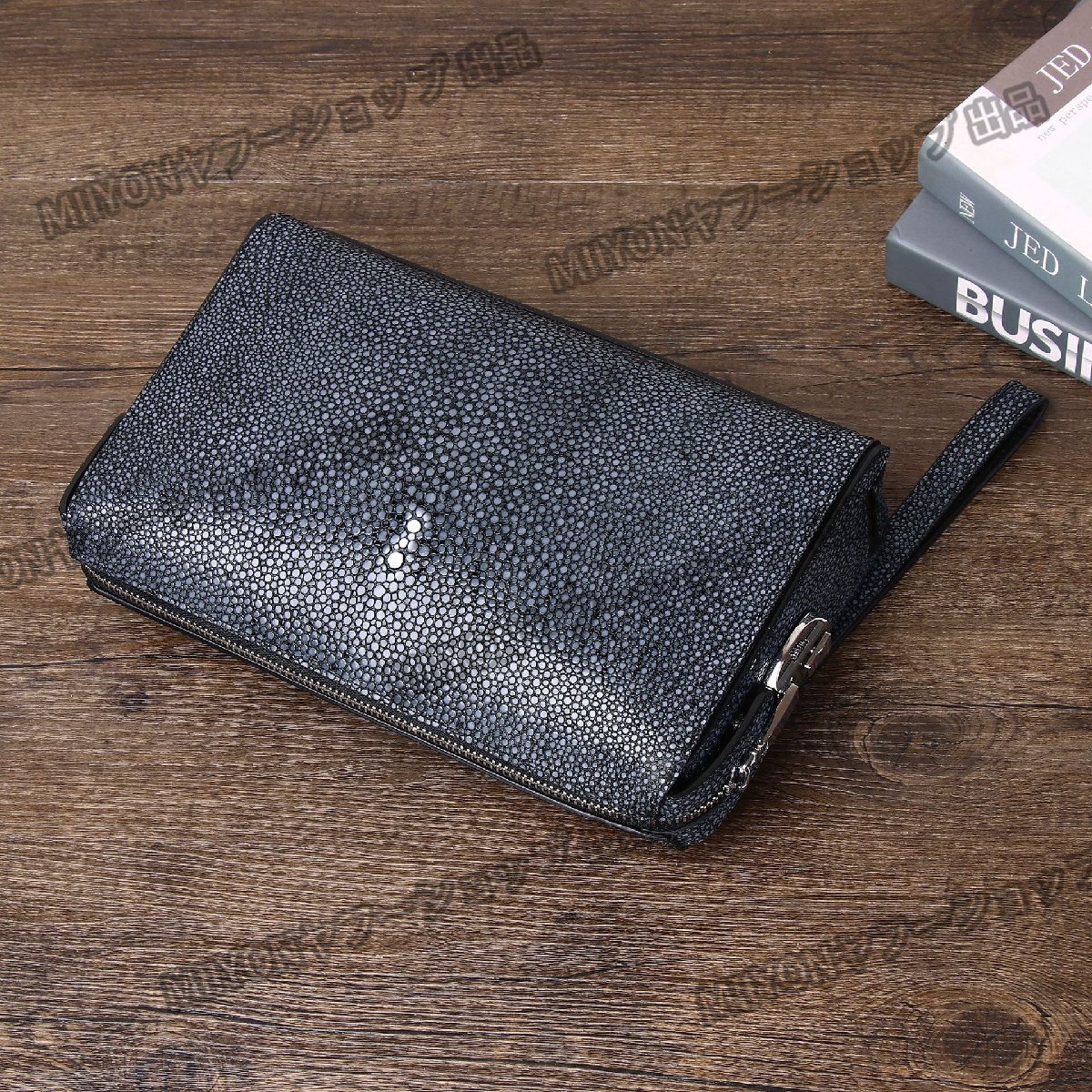 光沢感 立体 エイ革! スティングレイ 携帯入れ アカエイ ガルーシャ カード入れ クラッチバッグ セカンドバッグ 長財布メンズポーチ lhw248