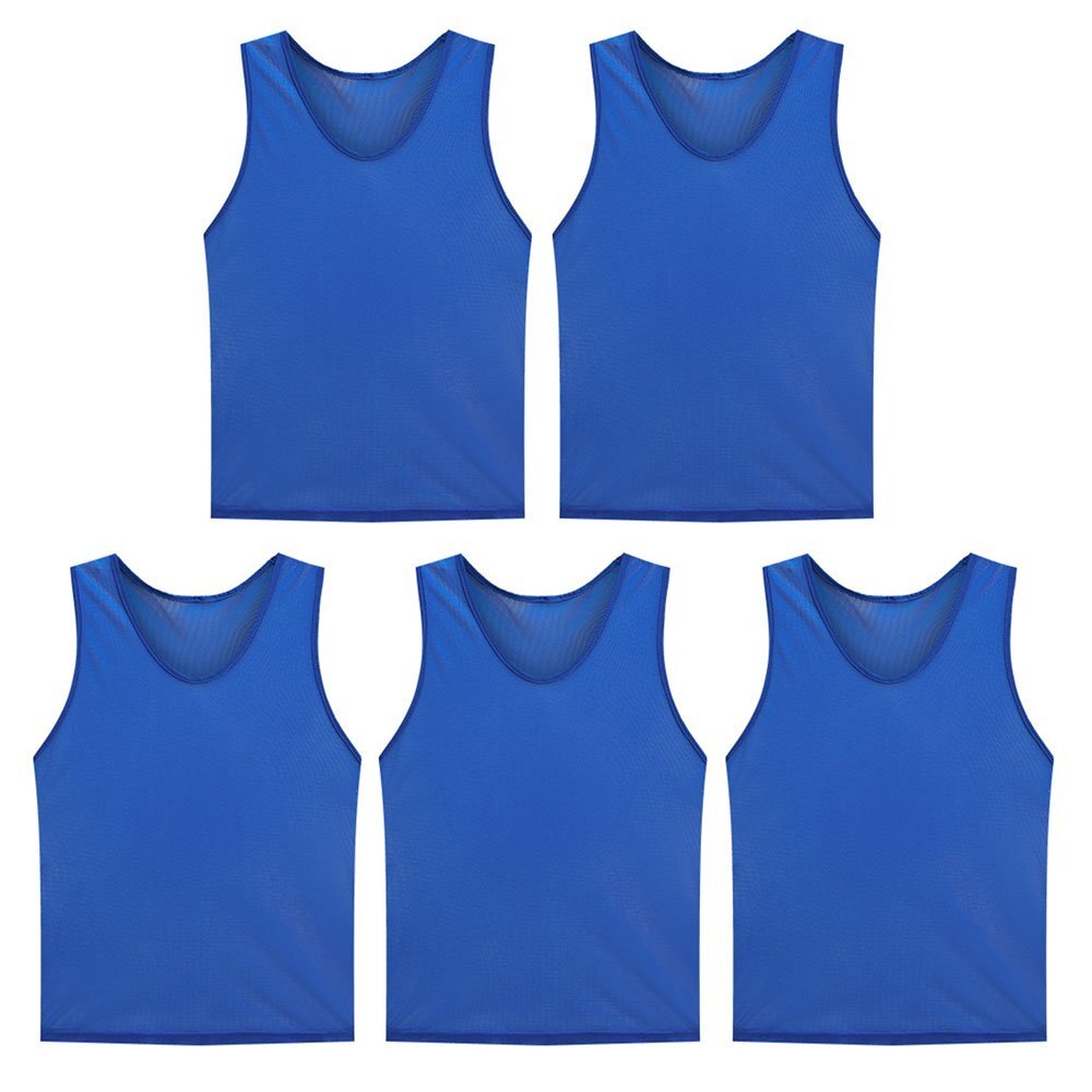 ◆ゼッケンベスト 5枚セット ビブス メッシュ 無地 サッカー バスケ フットサル 運動会 リレー スポーツ イベント ボランティア チーム分け 色分け 子ども用 大人用【大人用ブルー】BIBVS05S