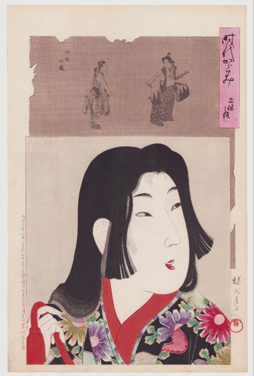 A12-10-5 時代かがみ 正保之頃 周延 明治30年 本物 浮世絵 木版画 大判 錦絵 美人画 大首絵 Chikanobu JapanesePrints Ukiyoe【真作】