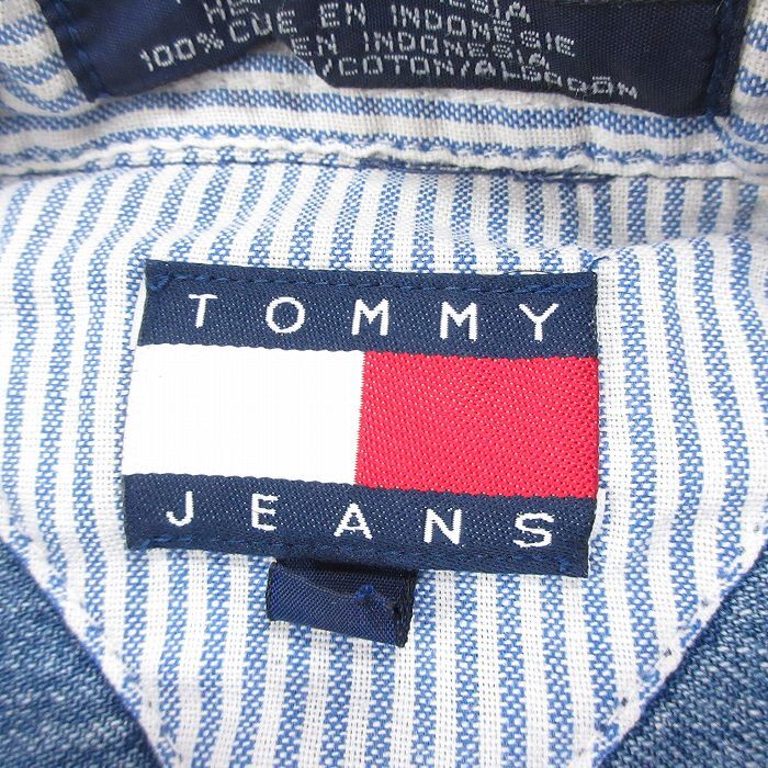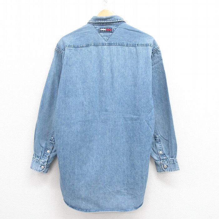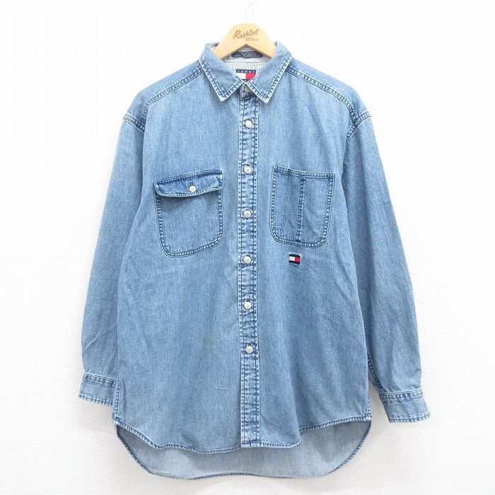 【商品名】 XL★古着 トミーヒルフィガー トミージーンズ 長袖 ブランド シャツ メンズ 90年代 90s ワンポイントロゴ コットン 紺 デニム
