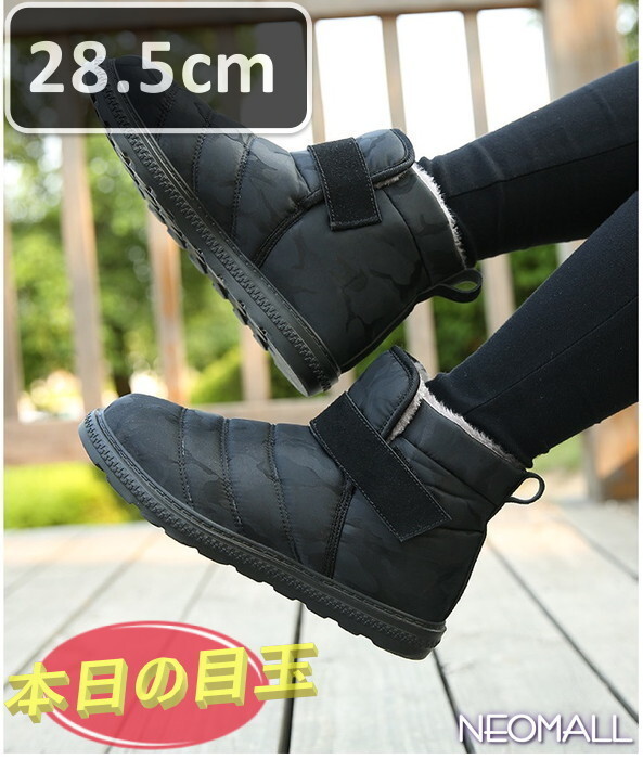 ユニセックス スノーシューズ 【870】 28.5cm 迷彩ブラック ムートンブーツ スニーカー ウィンターブーツ 裏起毛 防水 防寒 防滑 冬用靴