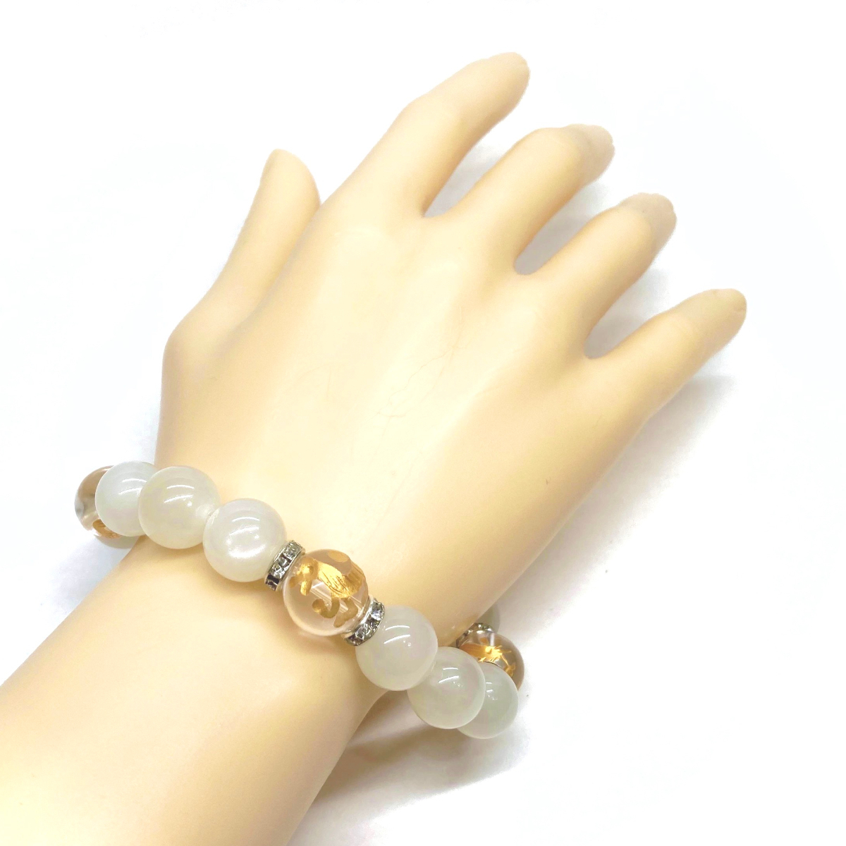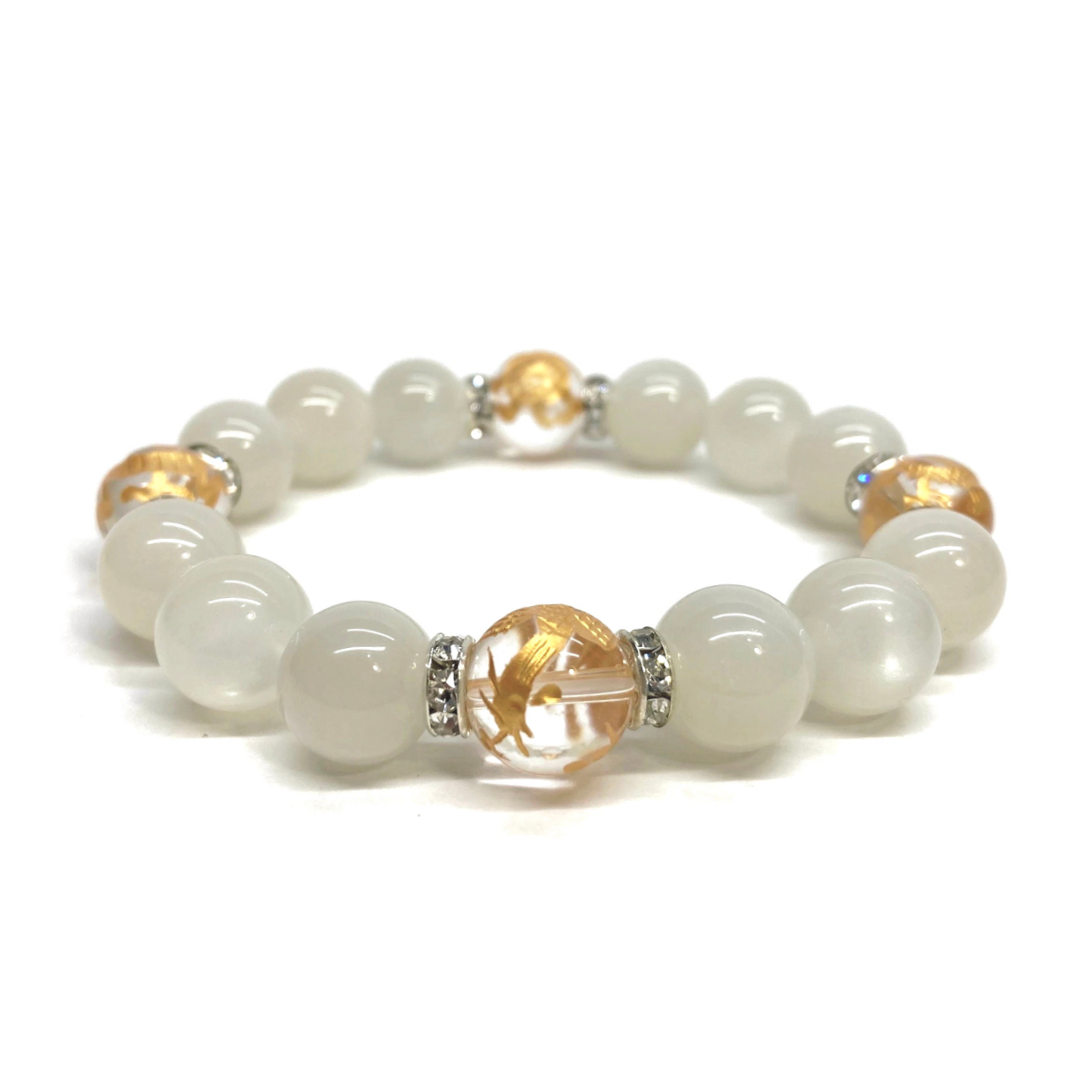 四神獣金彫水晶×ムーンストーン 12mm パワーストーン ブレスレット天然石 青龍 白虎 玄武 朱雀 運気上昇 金運 健康運 お守り 四神相応 S
