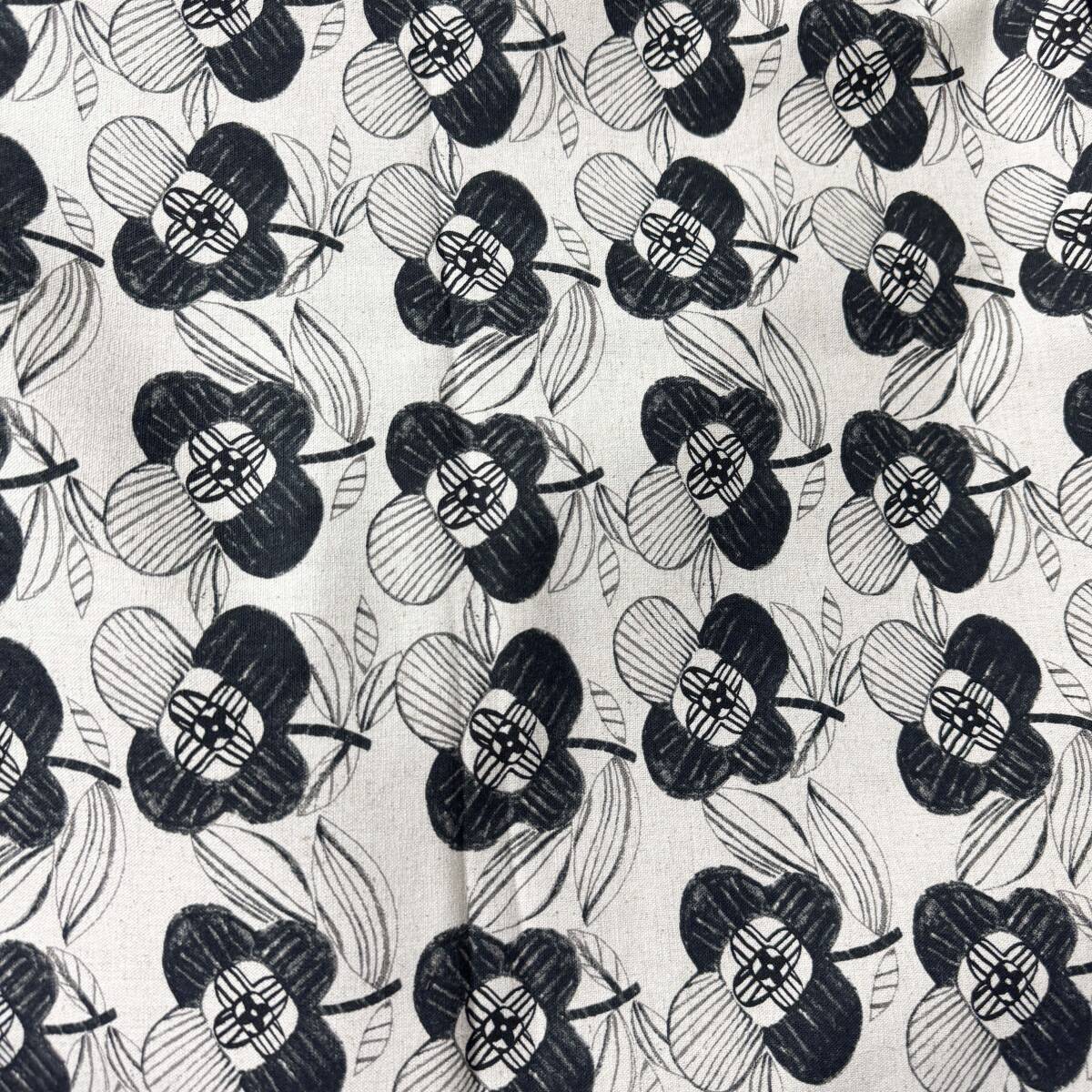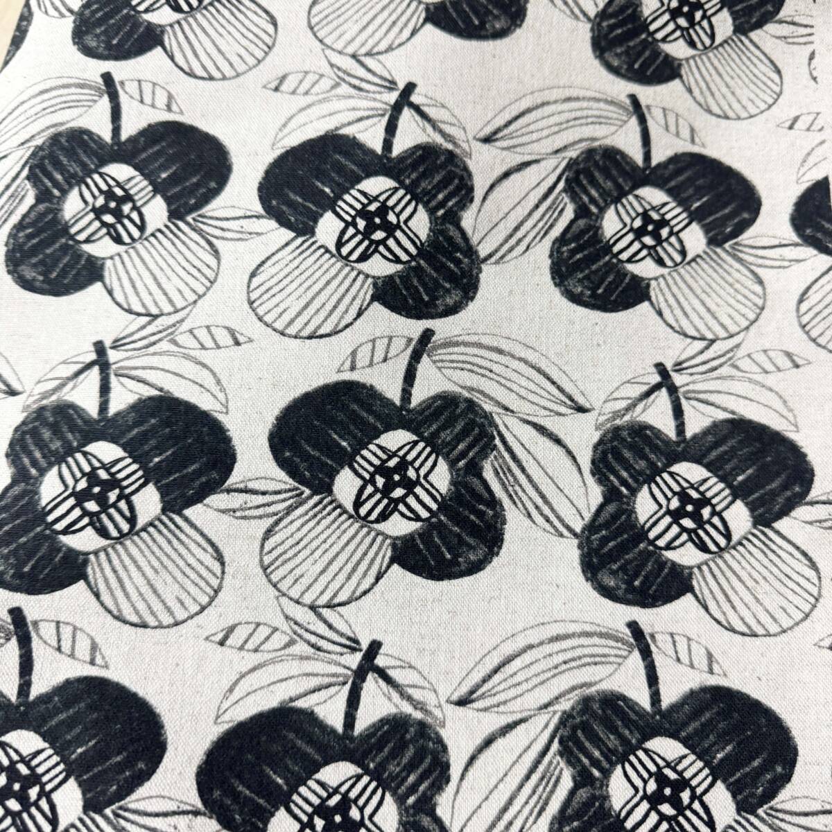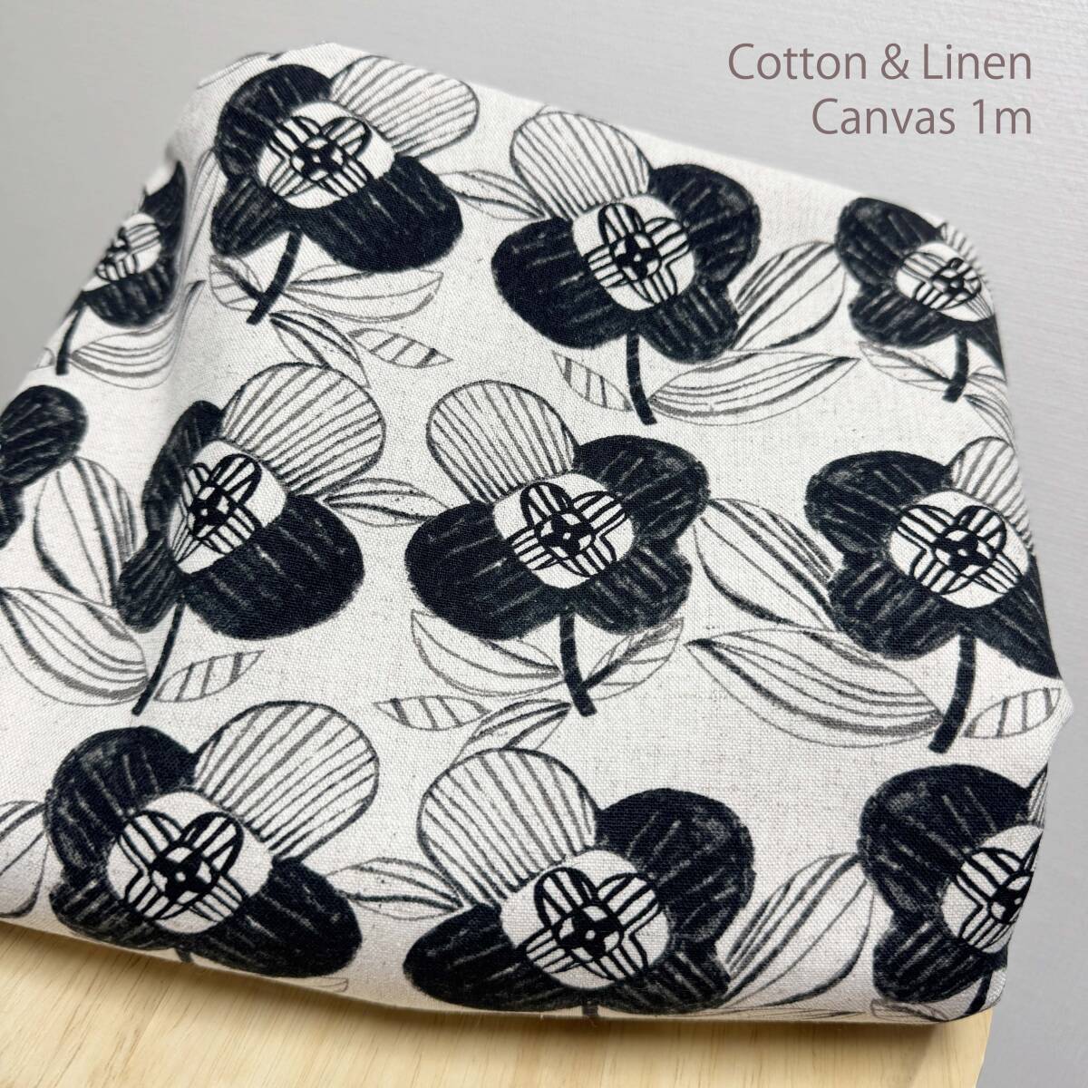 北欧調★手描きタッチのモノトーン花柄★綿麻キャンバス生地1m★日本製★布はぎれ