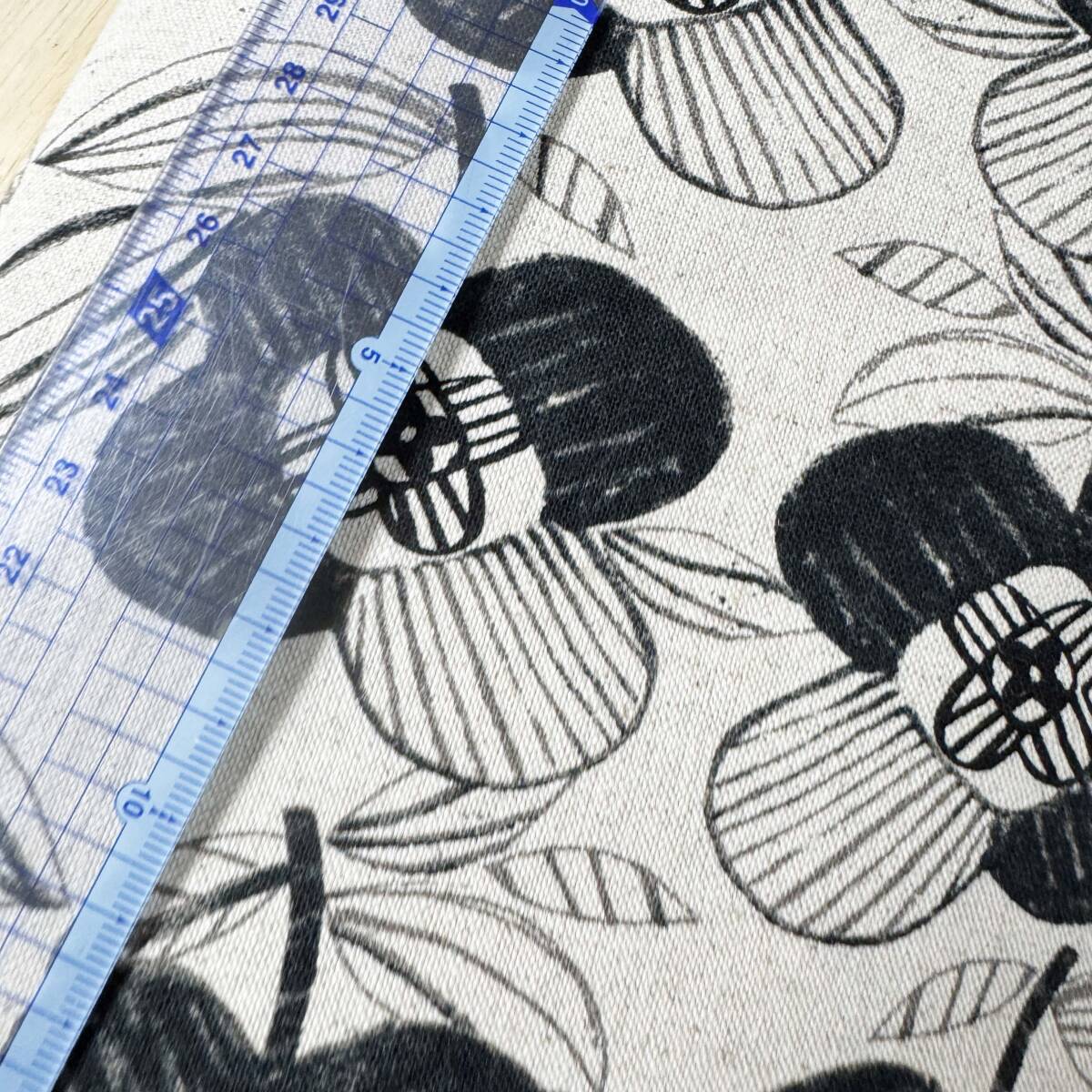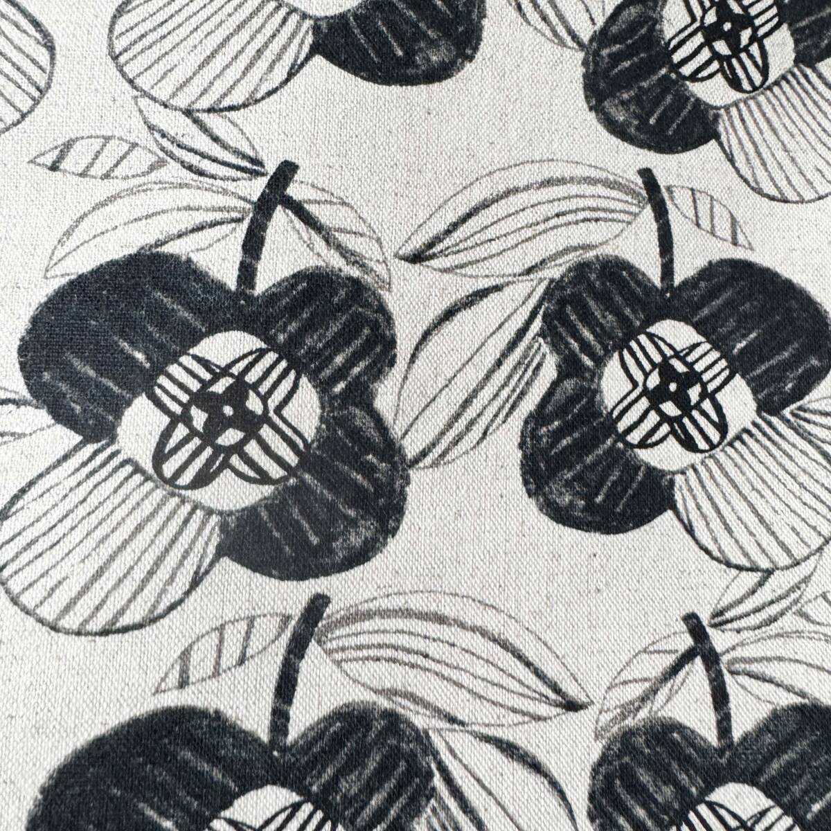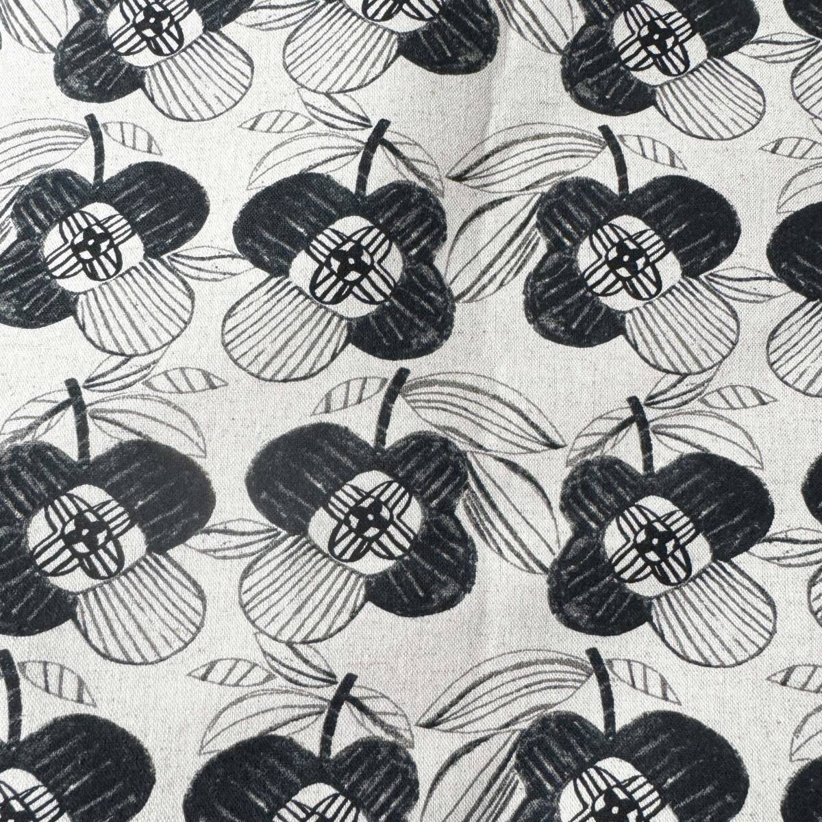 北欧調★手描きタッチのモノトーン花柄★綿麻キャンバス生地1m★日本製★布はぎれ