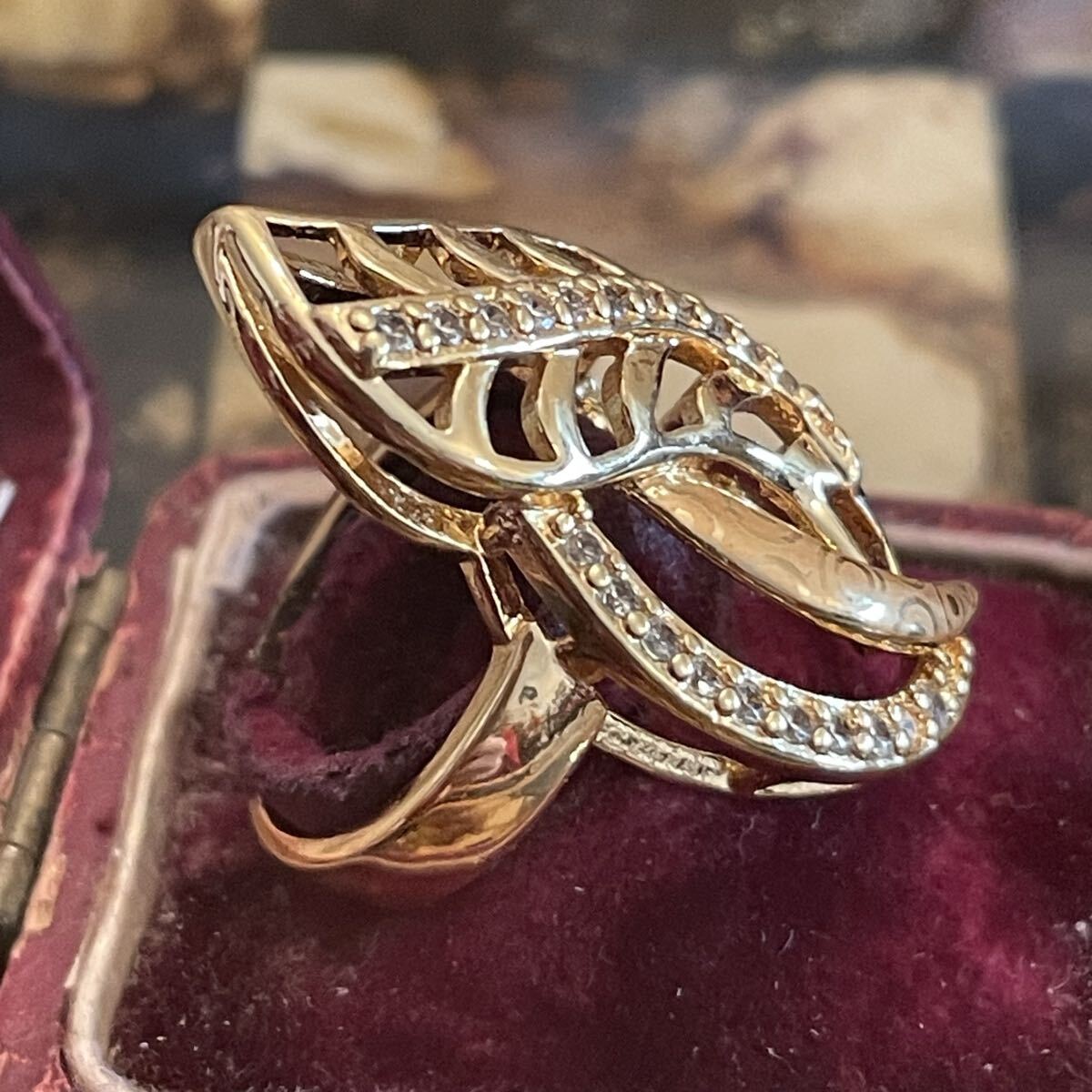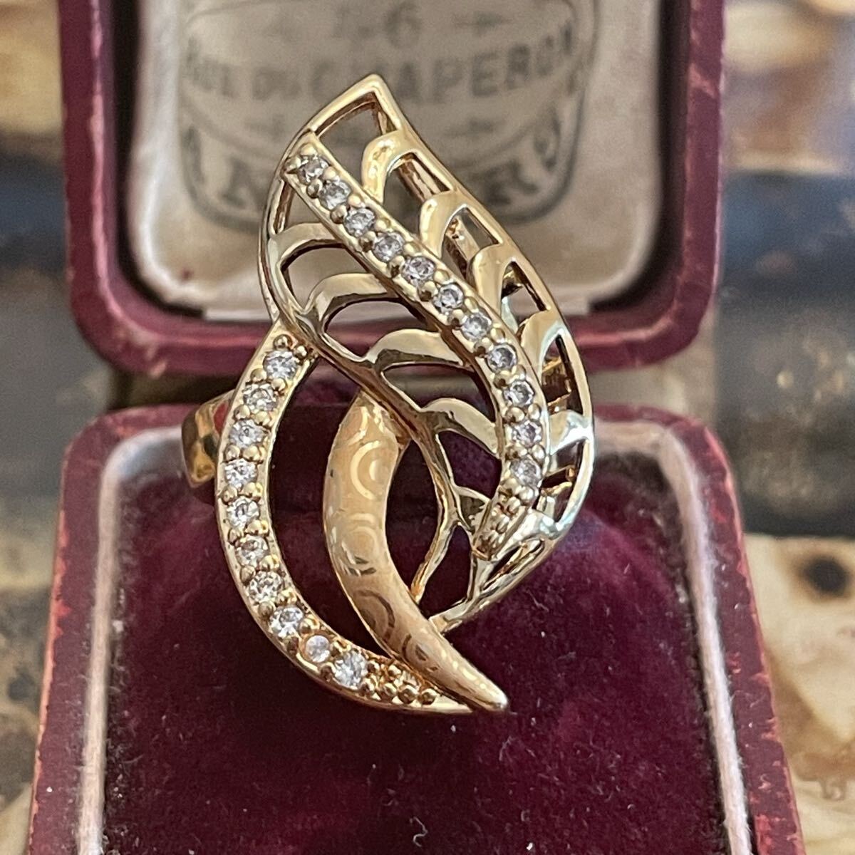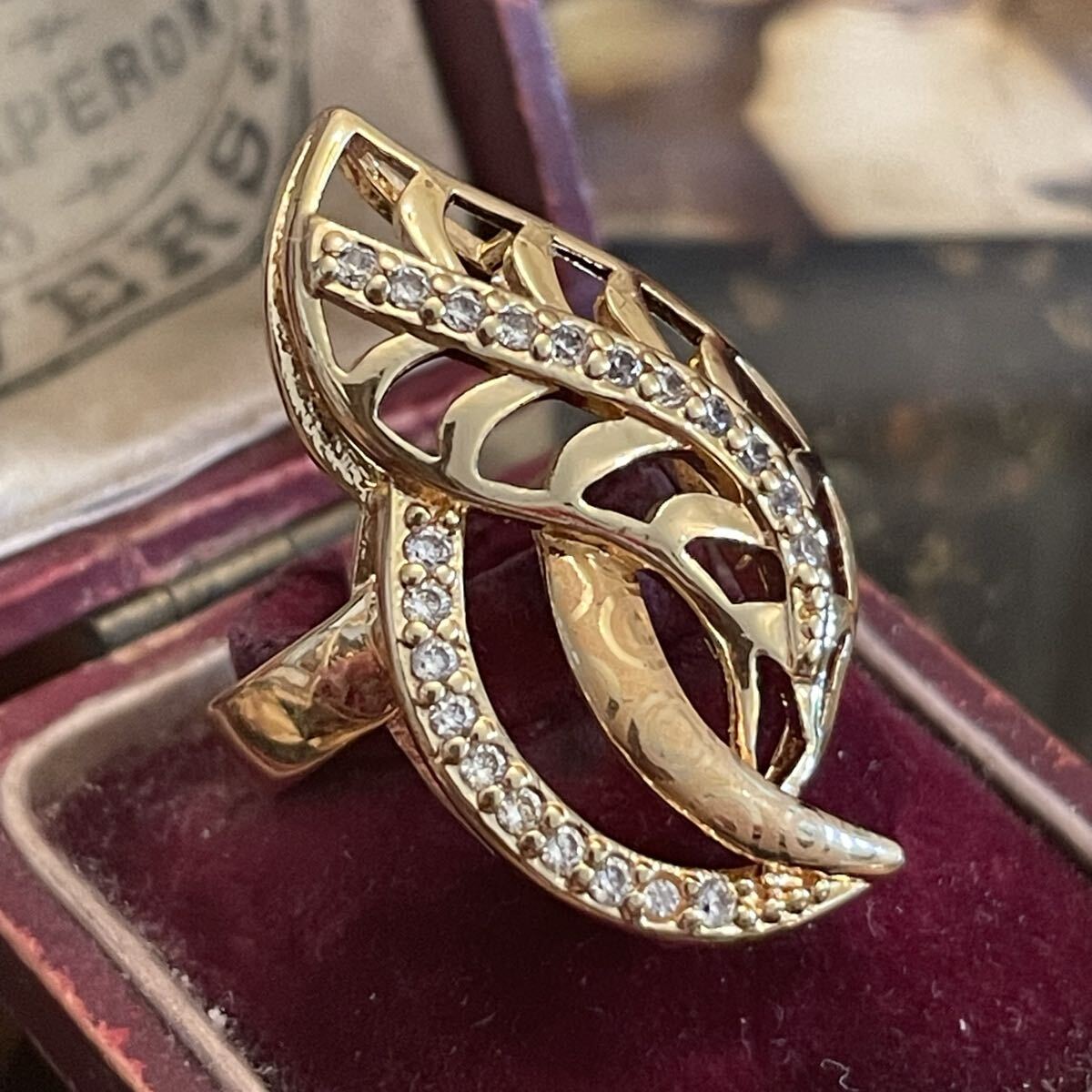 英国 イギリス ヴィンテージ 葉っぱ ボタニカル 金色 ゴールド リング 9号 指輪 アール・ヌーヴォー 蚤の市 ブロカント ビンテージ アンティーク