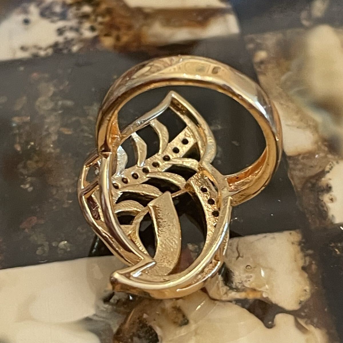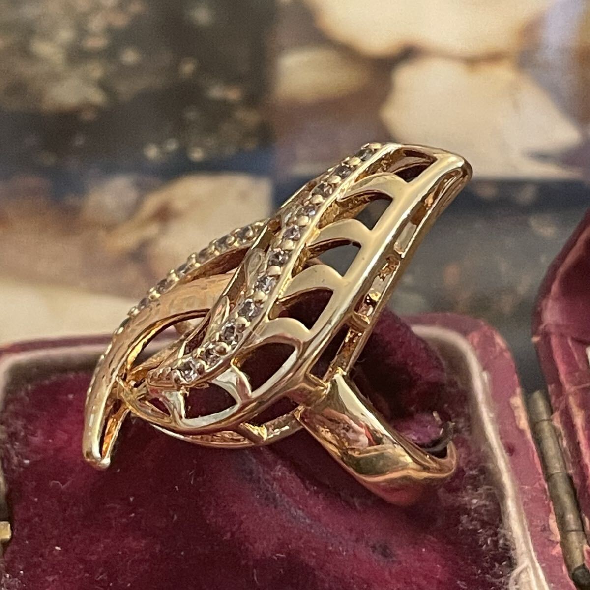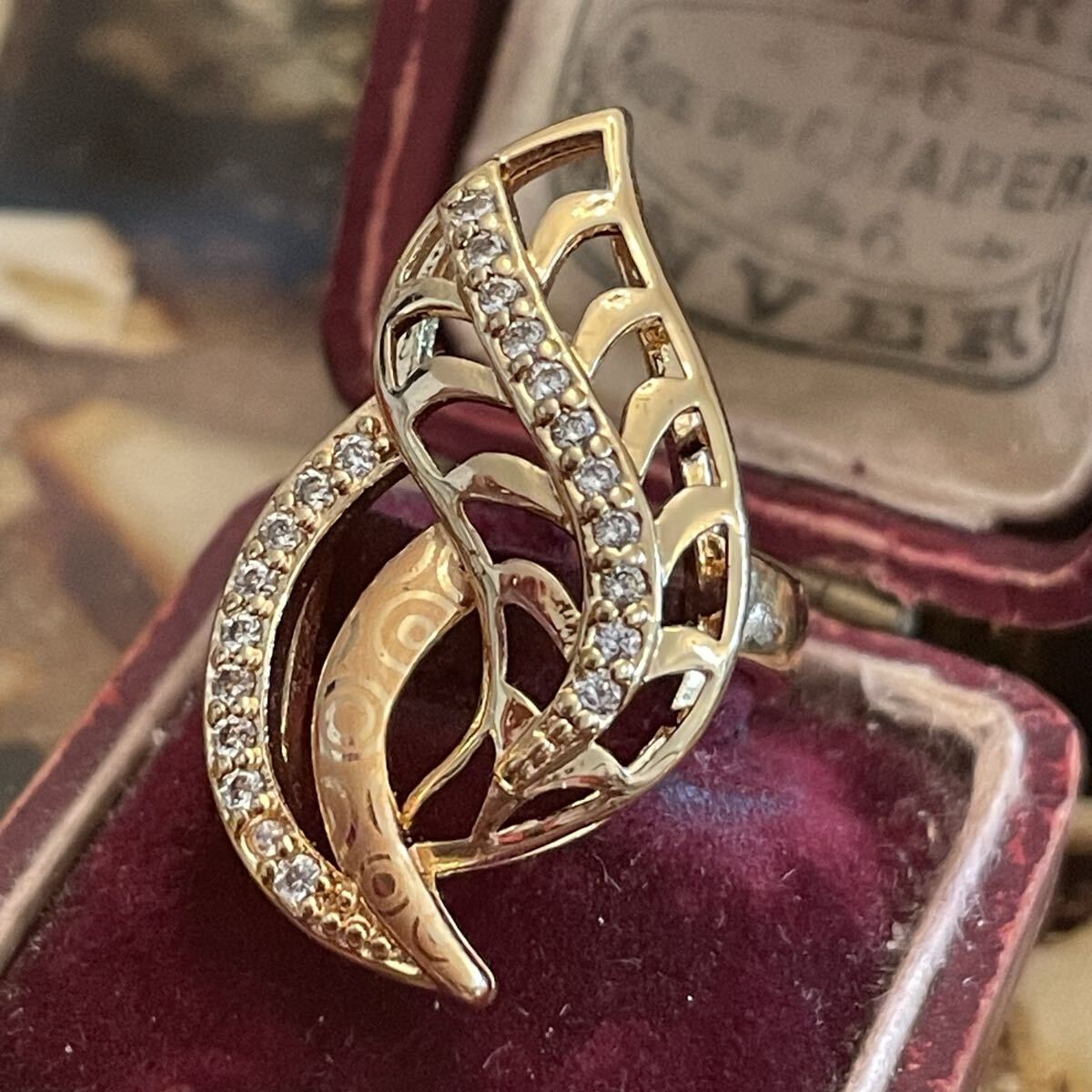 英国 イギリス ヴィンテージ 葉っぱ ボタニカル 金色 ゴールド リング 9号 指輪 アール・ヌーヴォー 蚤の市 ブロカント ビンテージ アンティーク