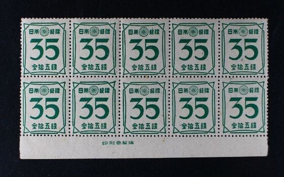 ☆出品商品名→ 印刷局銘板付『第2次新昭和切手/数字』35銭/10B NHほぼ美品