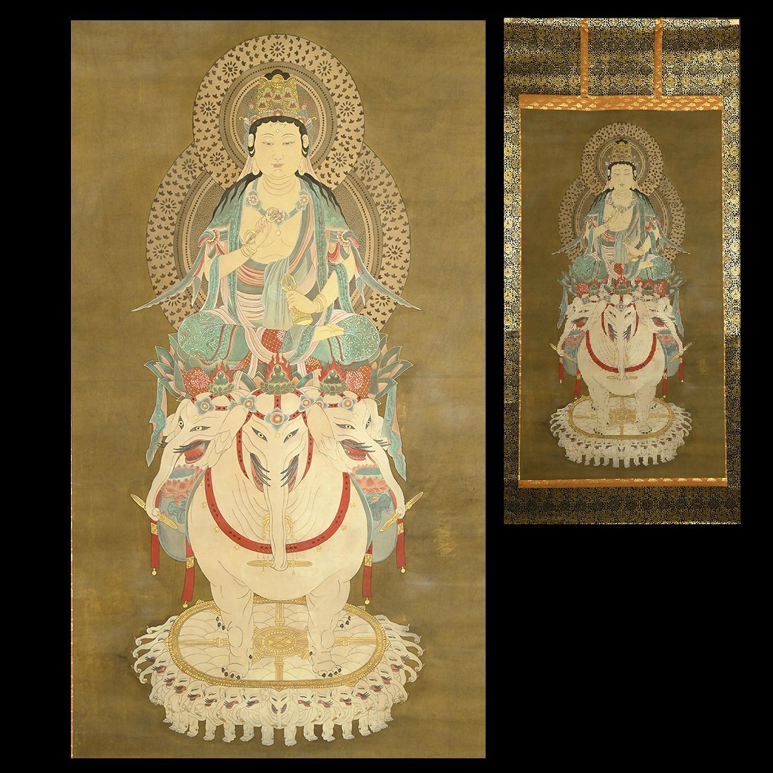 【永】b134【兵庫県の図書館や博物館の館長を歴任された歴史研究家遺族委託品】掛軸 狩野芳崖 細密彩色普賢菩薩画仏画幅 花鳥画日本画