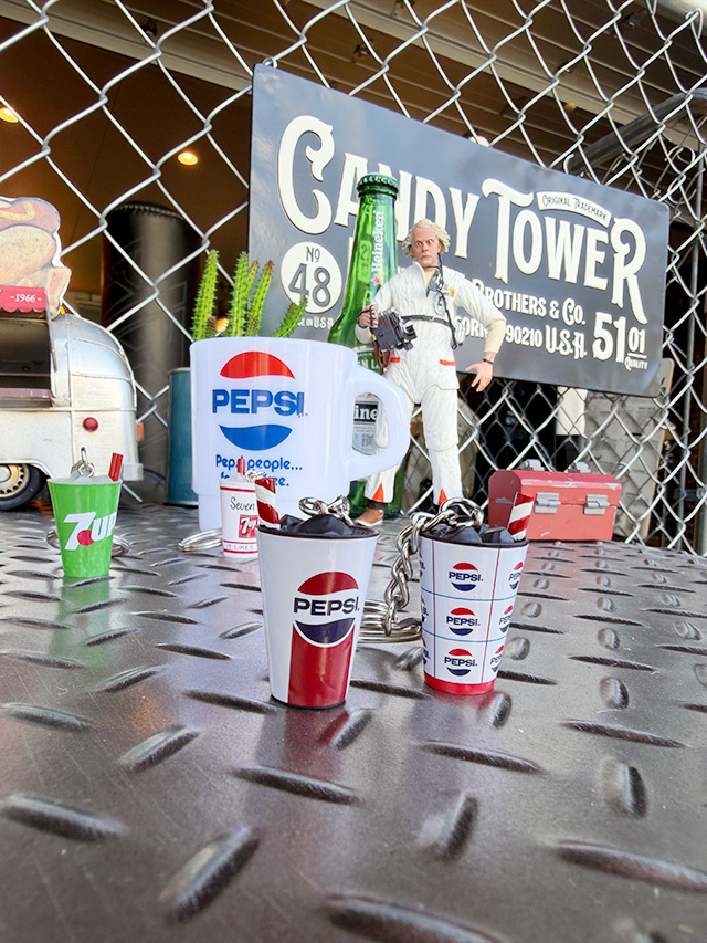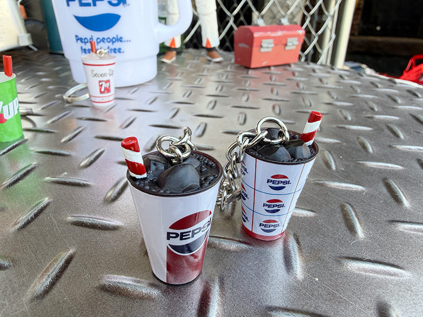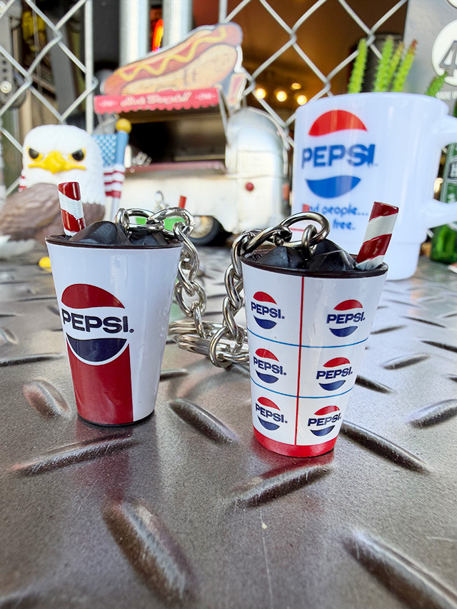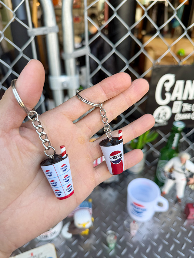 そんな古き良き70年代の風景をそのまま閉じ込めたような、ペプシのミニチュアカップキーホルダーです。