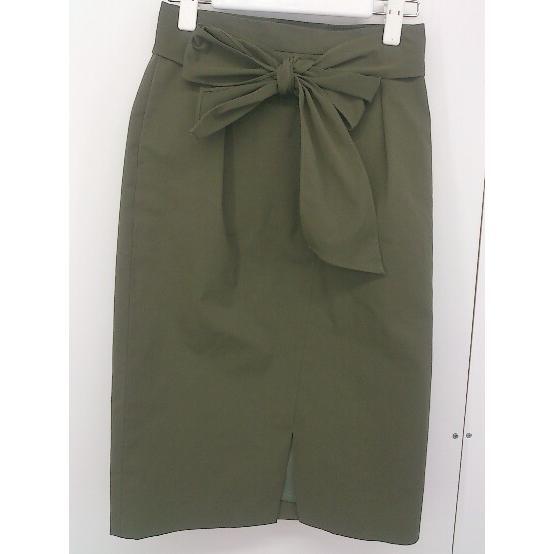 ◇ ◎ DONEEYU ド二ーユ ウエストリボン バックウエストゴム 膝下丈 タイト スカート サイズ 36 カーキ レディース