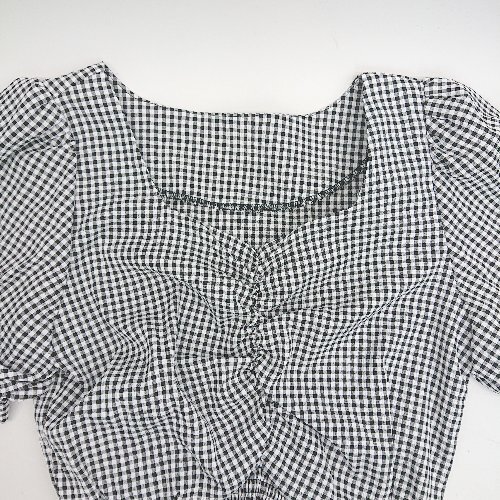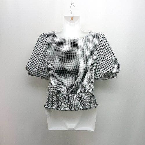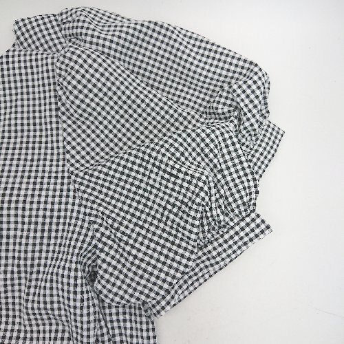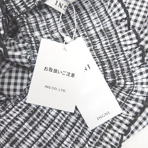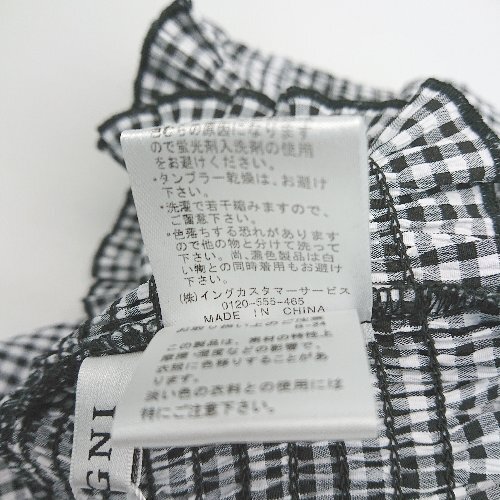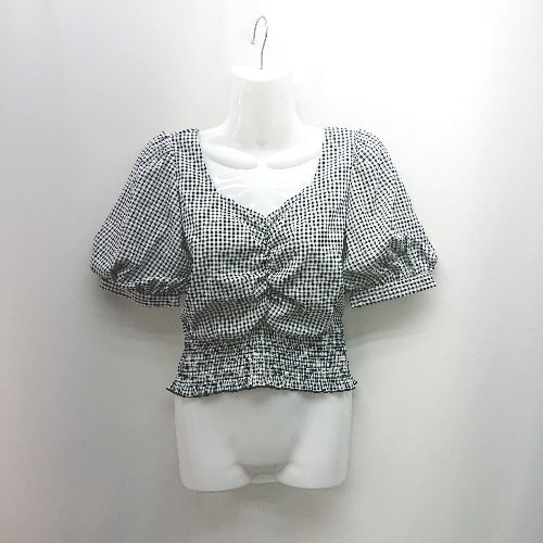 ◇ ◎ ●未使用● INGNI イング ギンガムチェック柄 ギャザー ガーリー 半袖 ブラウス サイズM ブラック系 レディース E