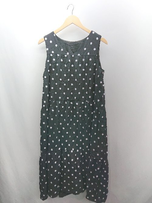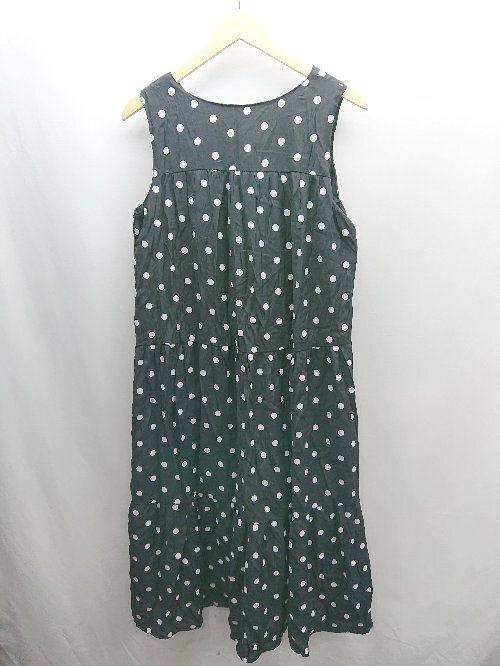 ◇ ⊂ Lunedi ルネディ 水玉柄 膝下丈 ワンピース サイズL ブラック系 レディース E