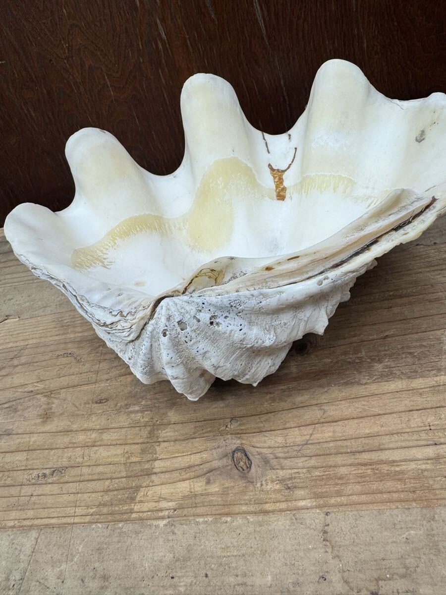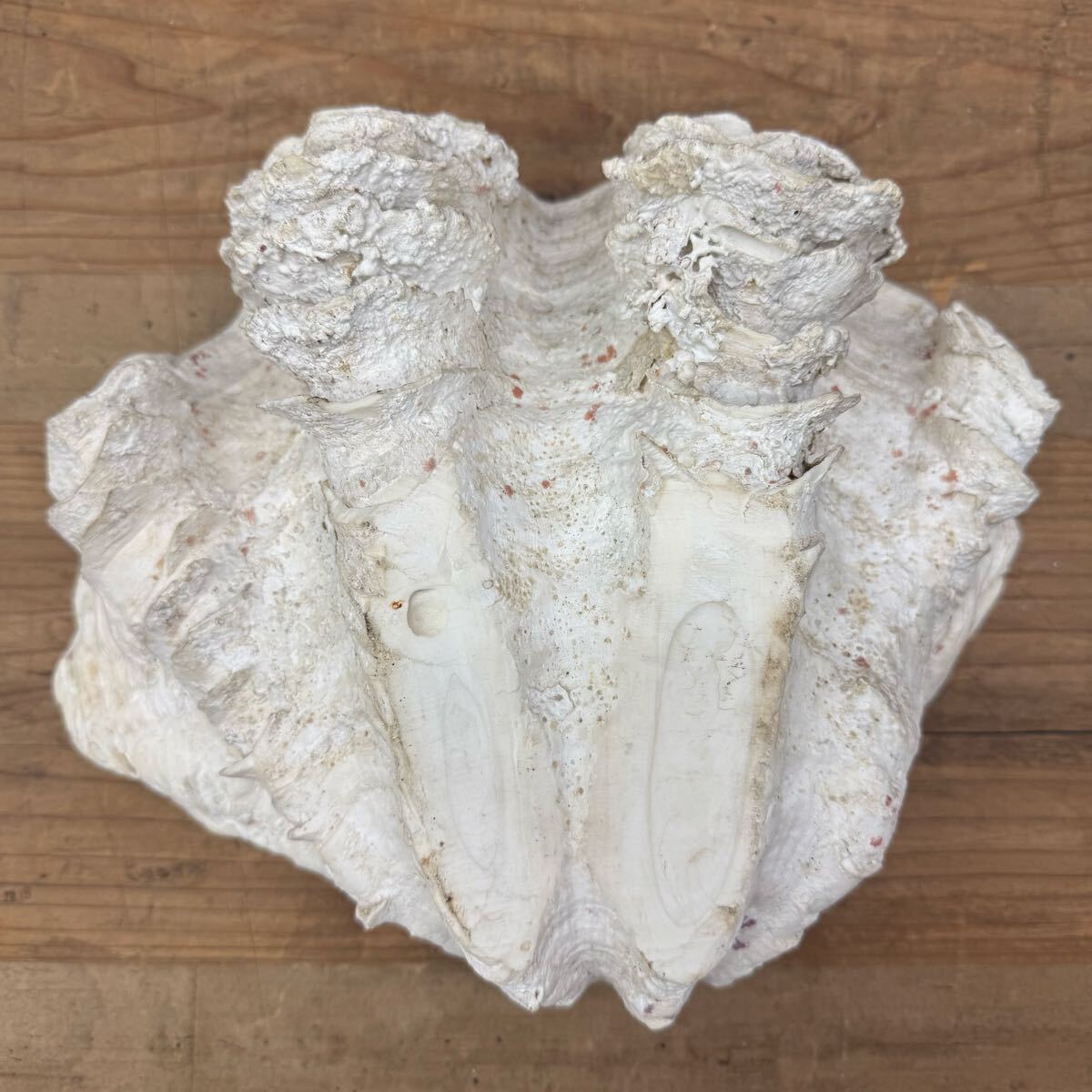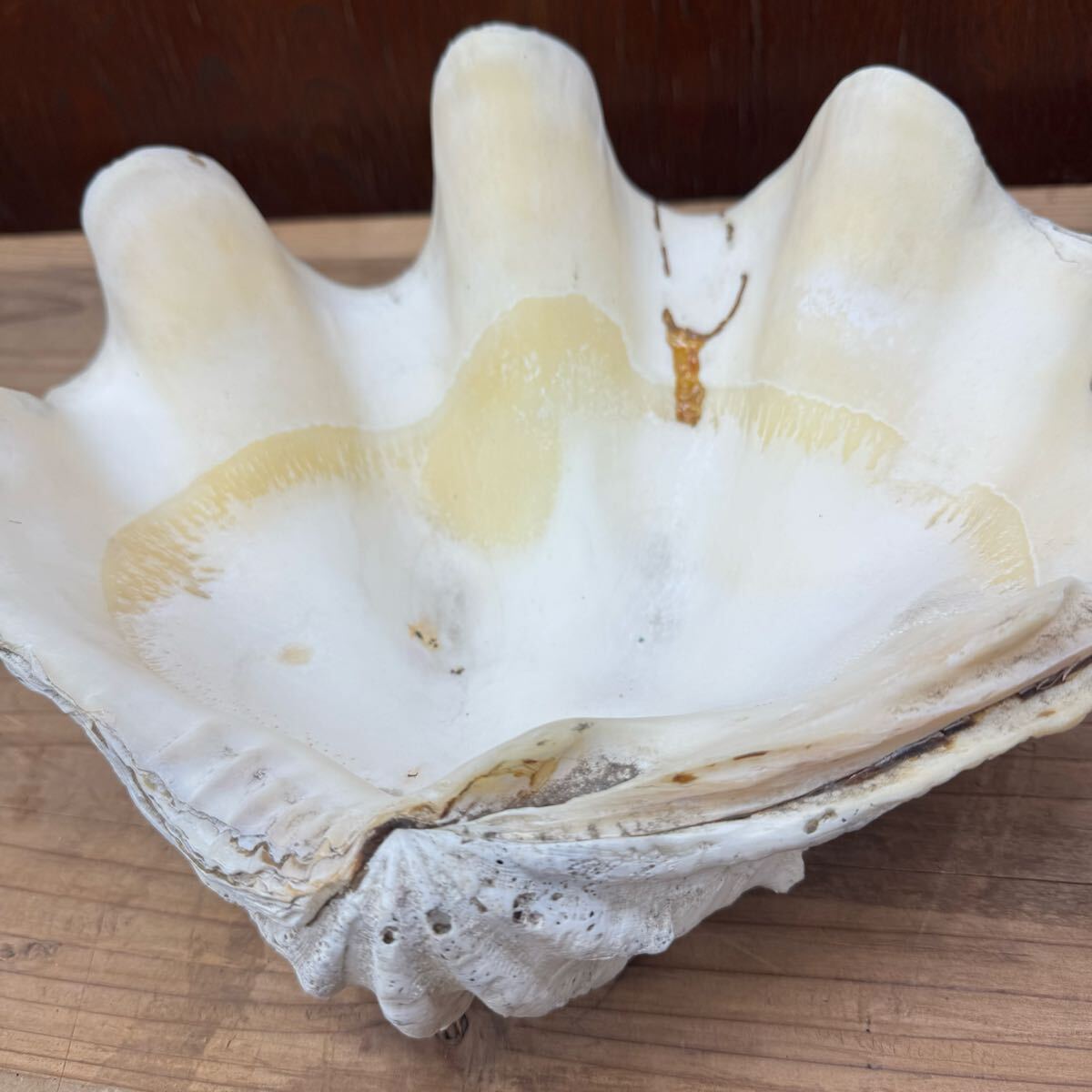 シャコガイならではの重厚な存在感と、自然が長い年月をかけて作り上げた唯一無二の造形美が魅力のお品になります。